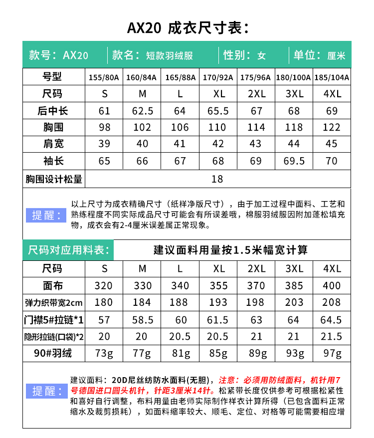 裁缝学苑AX20轻薄羽绒服纸样女装冬季2022年新款短款外套衣服样板