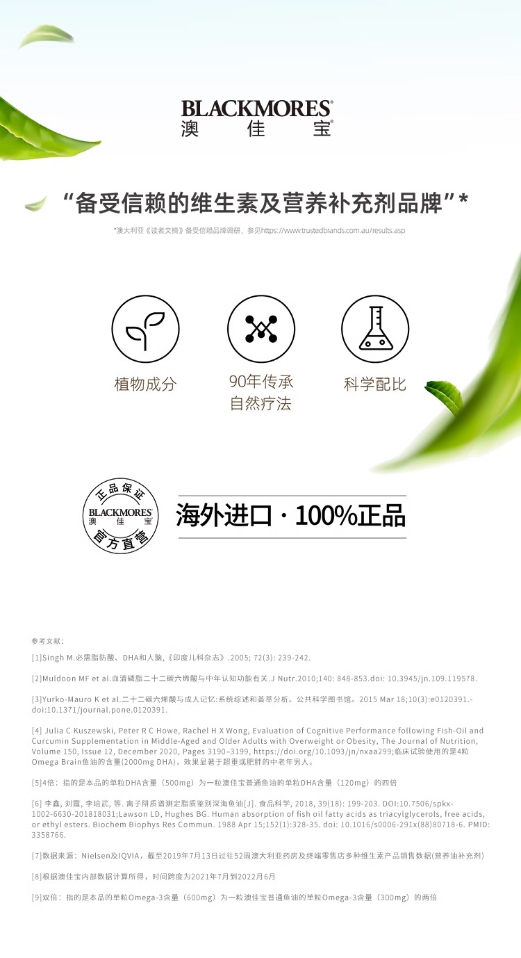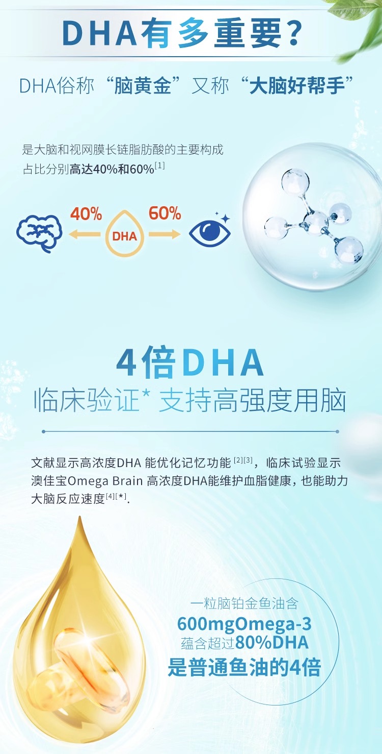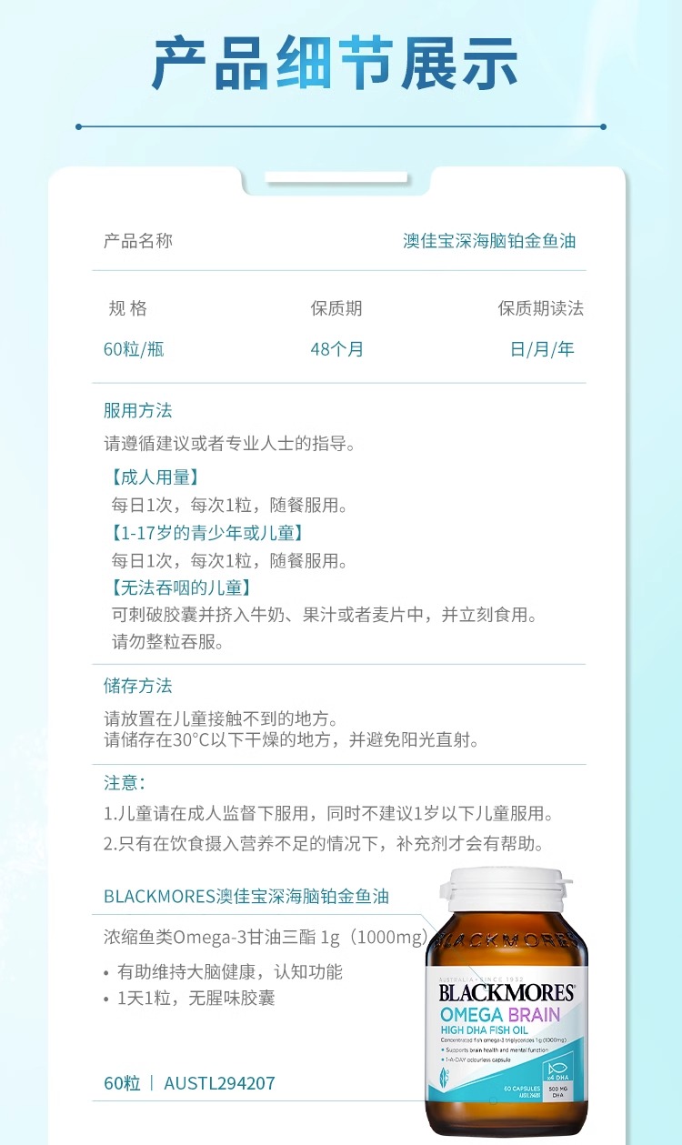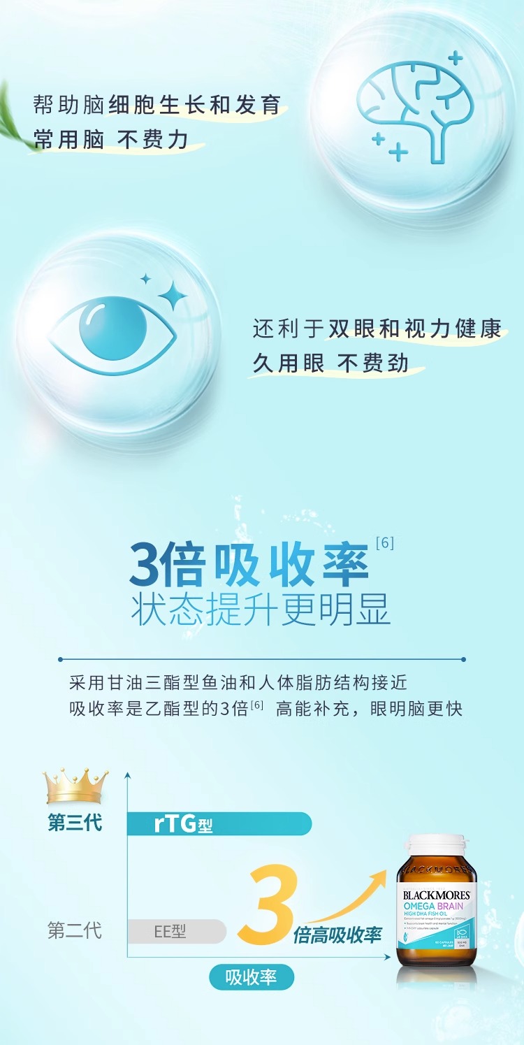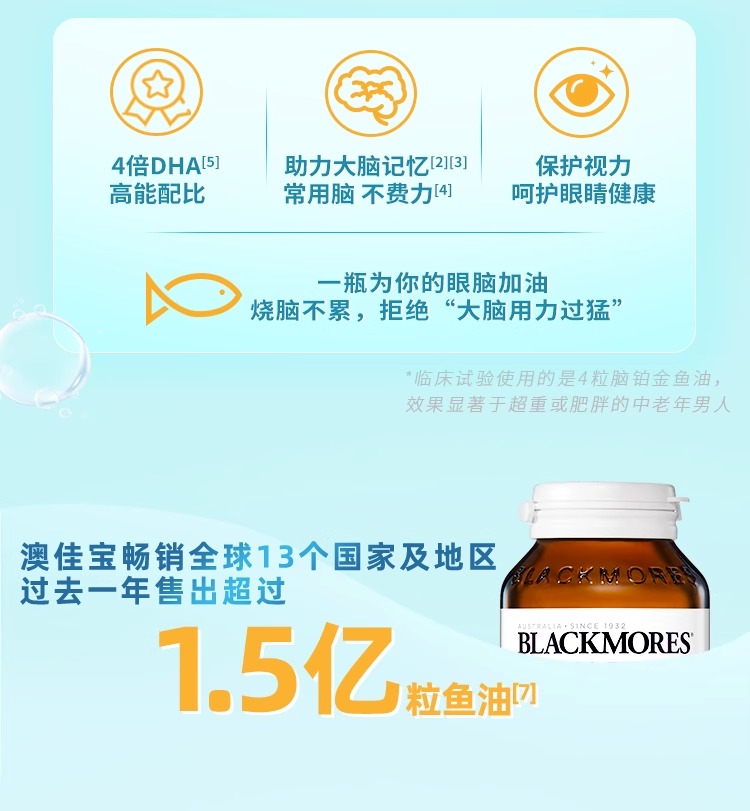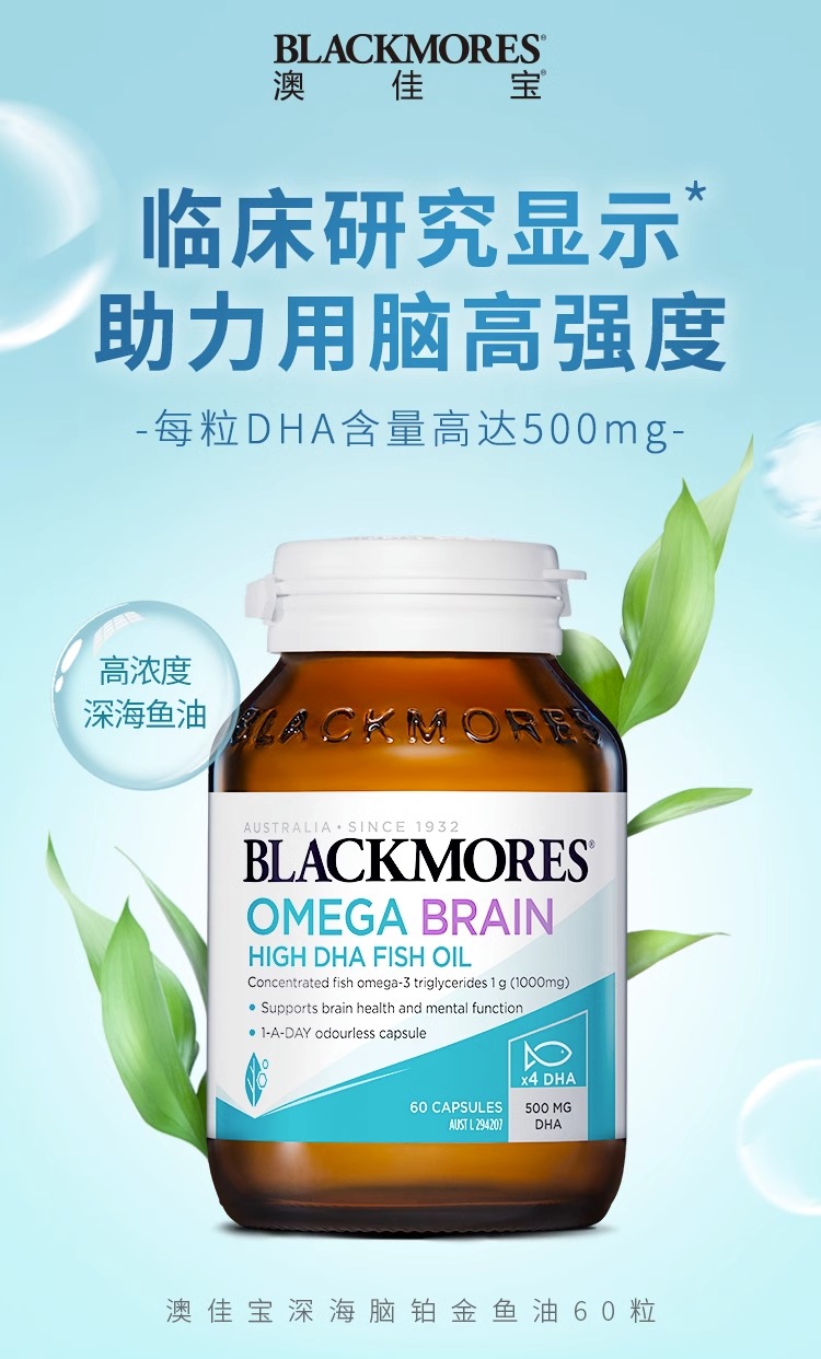 Blackmores高浓度DHA 4倍无腥味铂金深海鱼油60粒