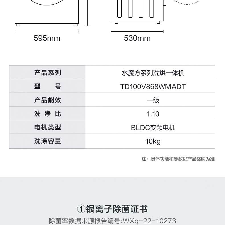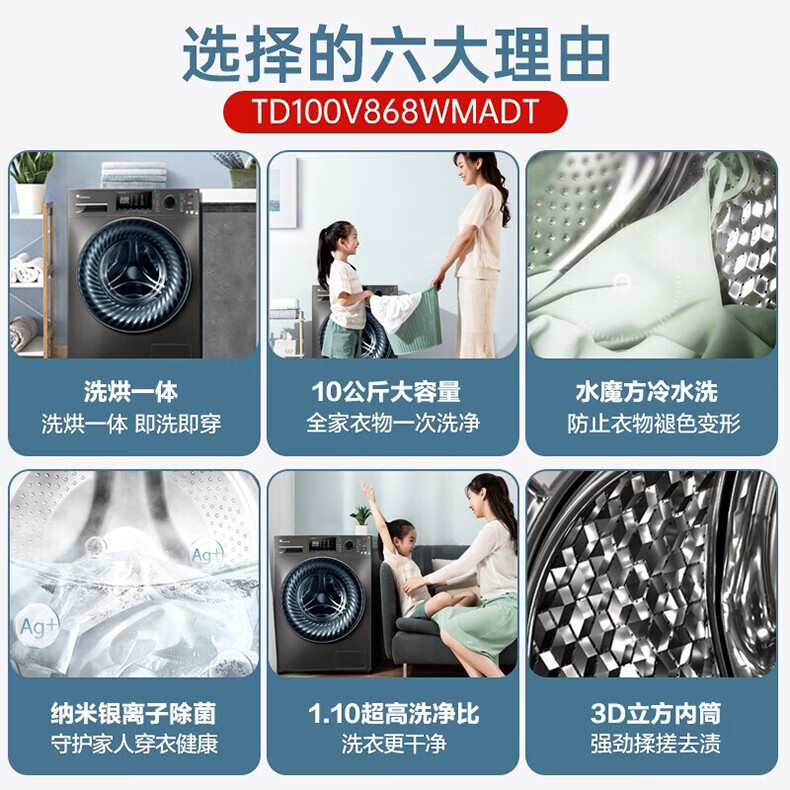 小天鹅(LittleSwan)滚筒洗衣机全自动 10公斤洗烘一体 水魔方除菌护形护色防缠绕 洗烘一体 TD100V868WMADT