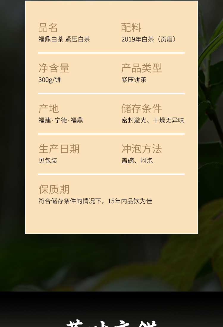 鼎茗荟丨 福鼎高山贡眉饼老白茶 一级 2019年原料 300g 礼盒配手提袋