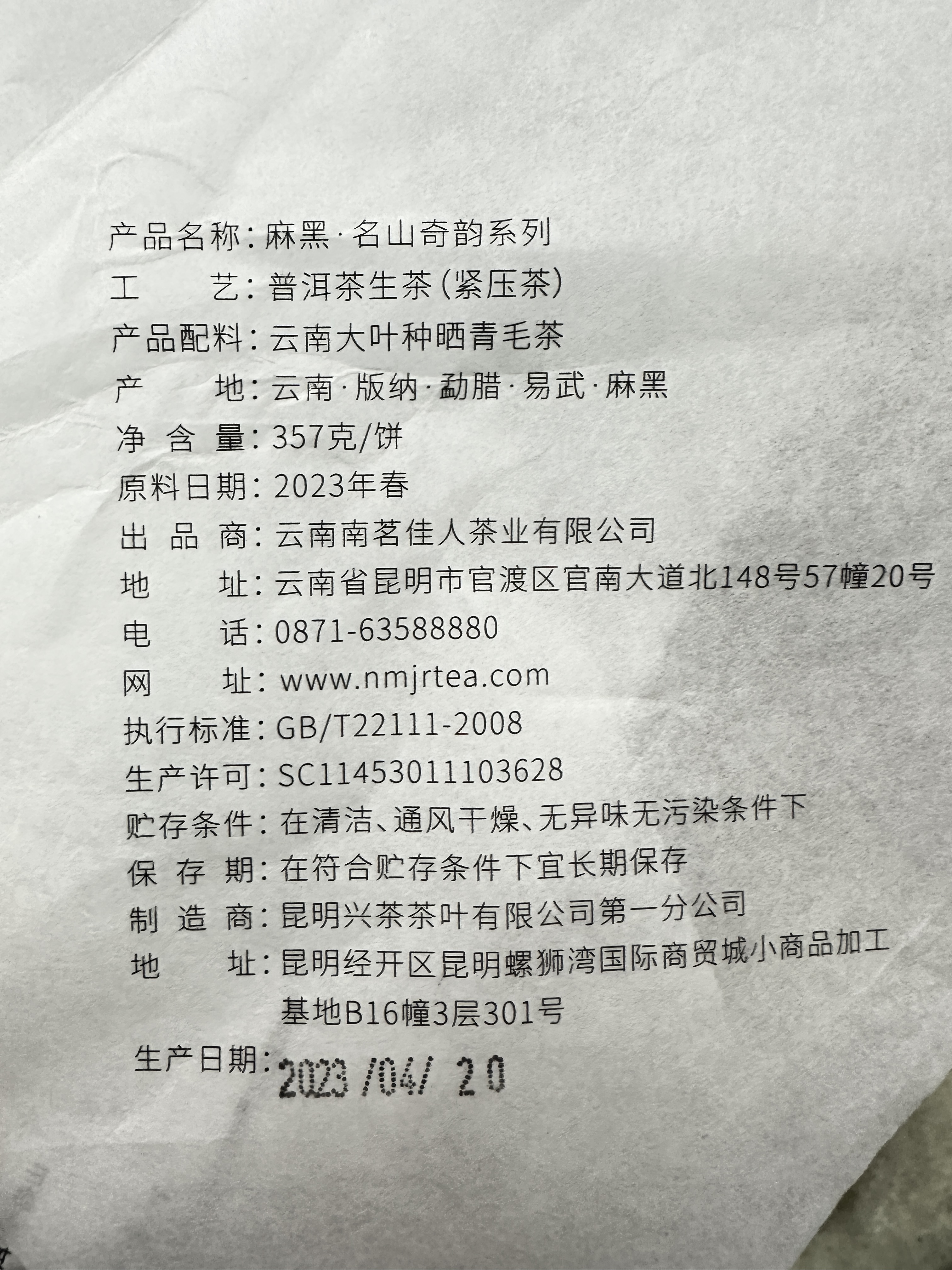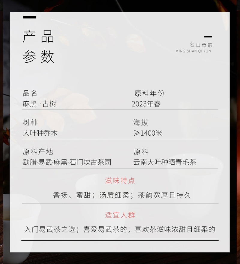 2023《麻黑》古树纯料春茶 357克*1饼 生茶