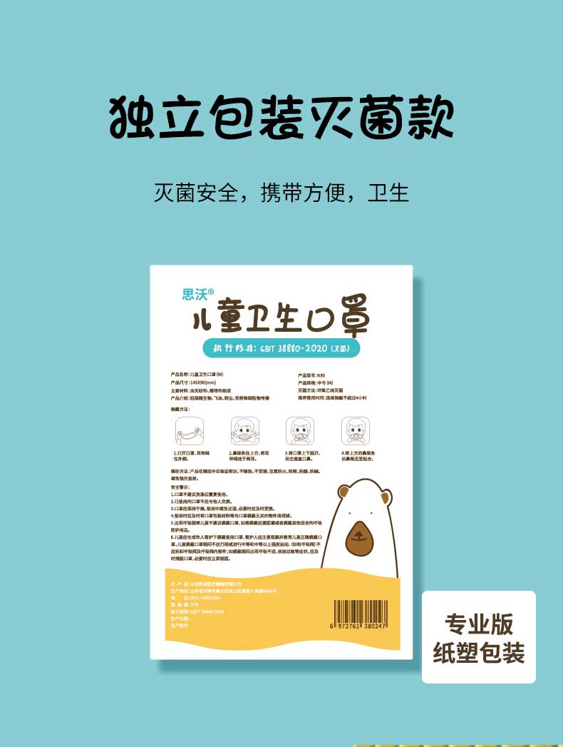 思沃 SINOVO 医用外科口罩!160+家医院点赞,成人、儿童可选,精选熔喷无纺布,3层防护,阻挡飞沫,过滤效率大于98.7~%