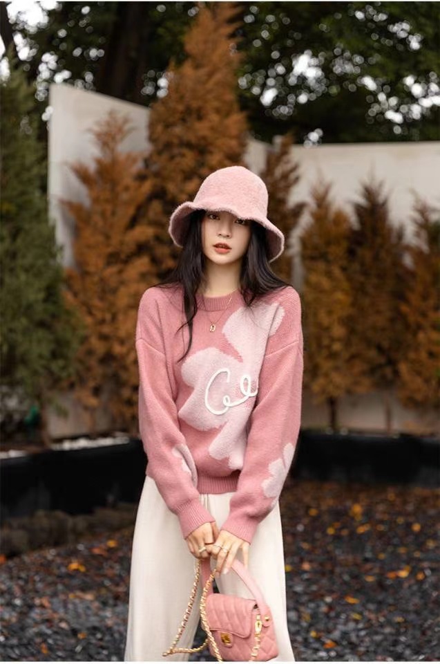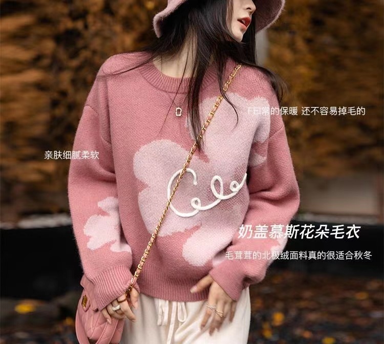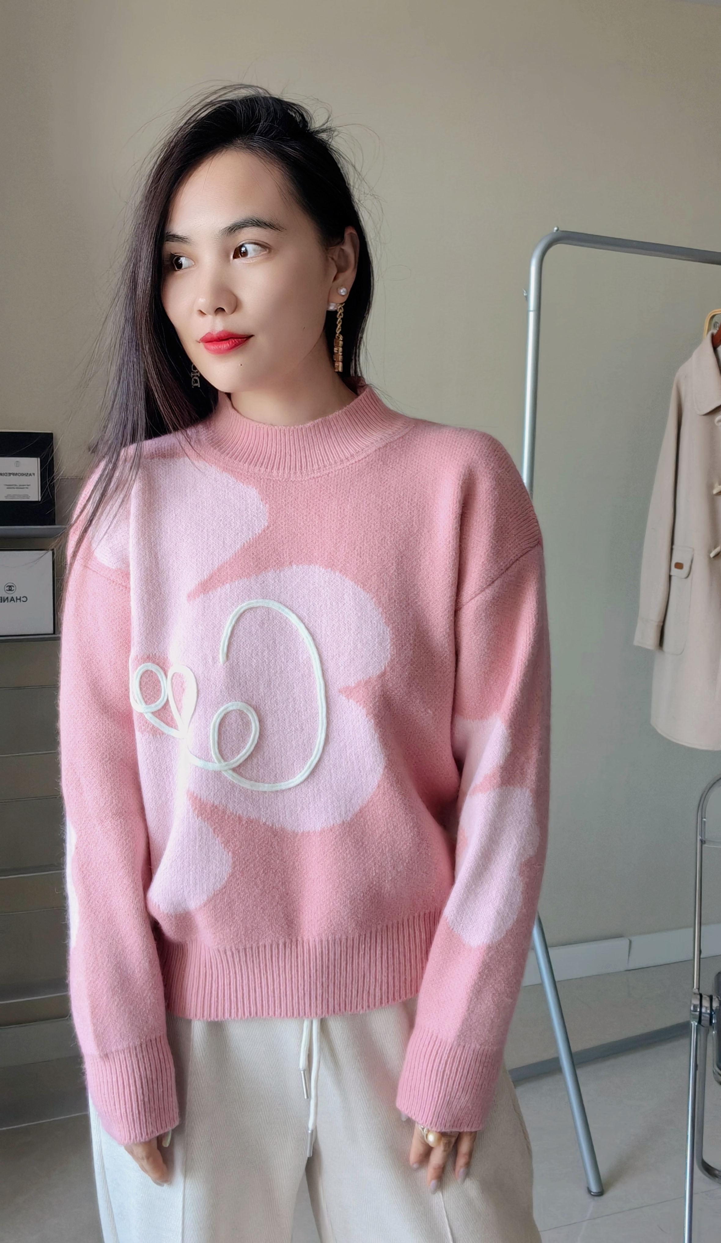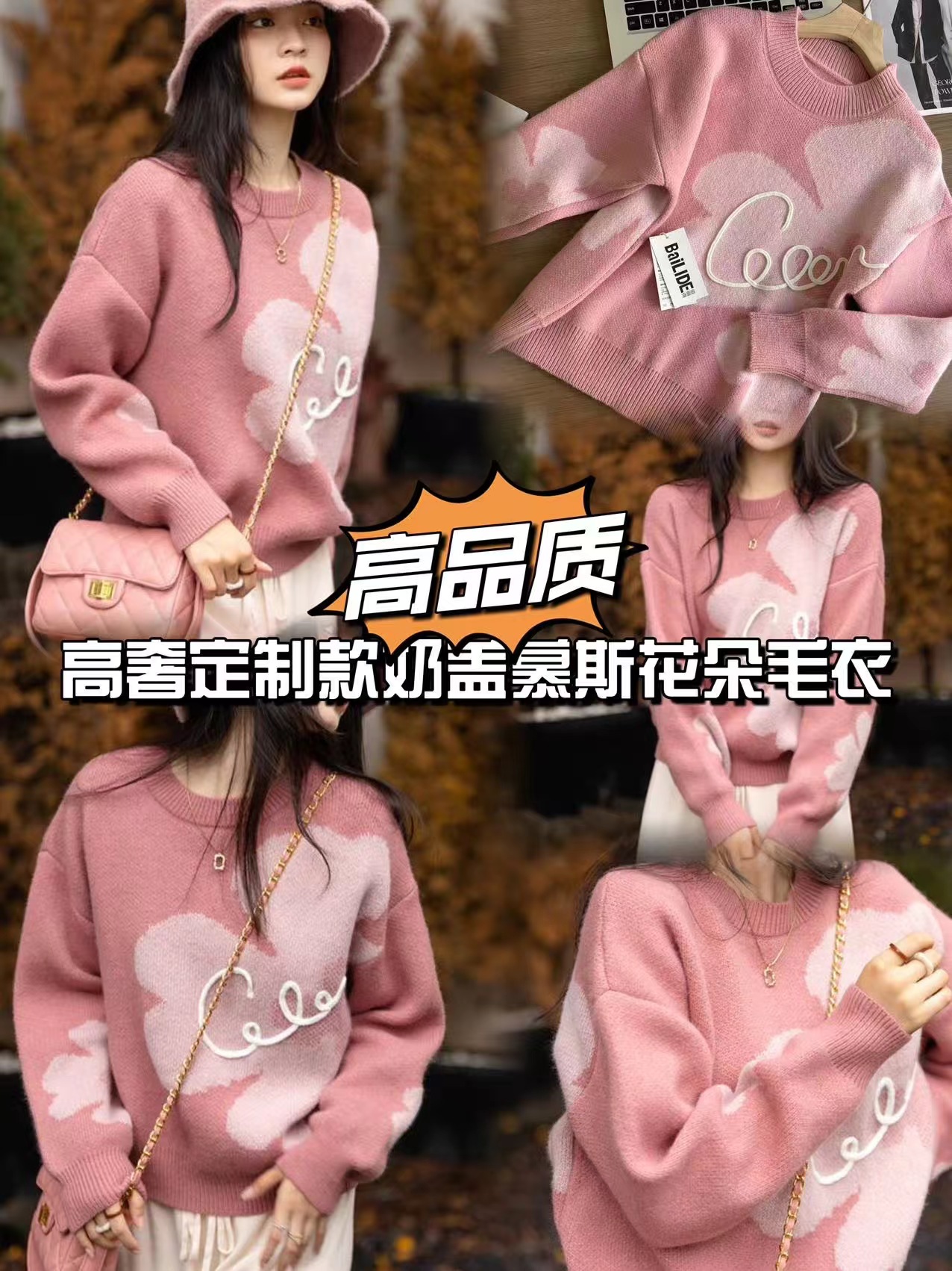 🔻很干净清爽的毛衣,衣身袖子的花朵图案装饰!