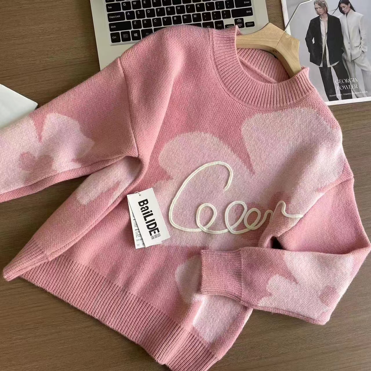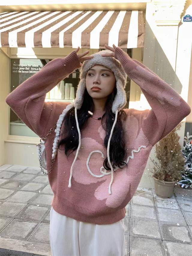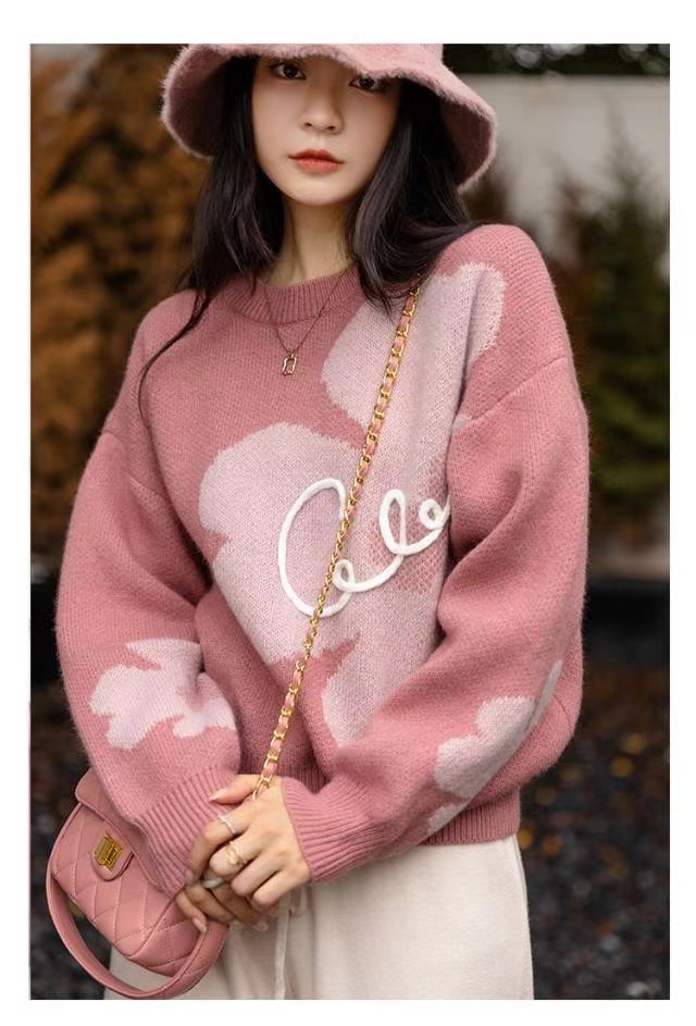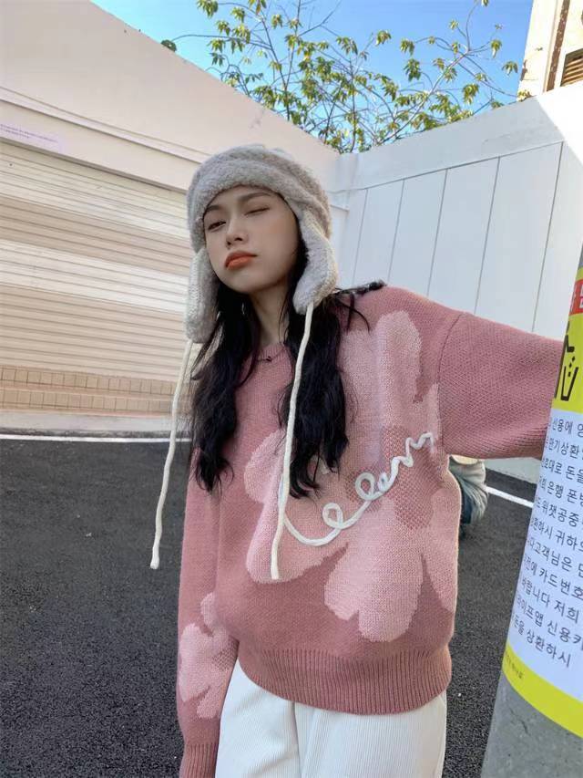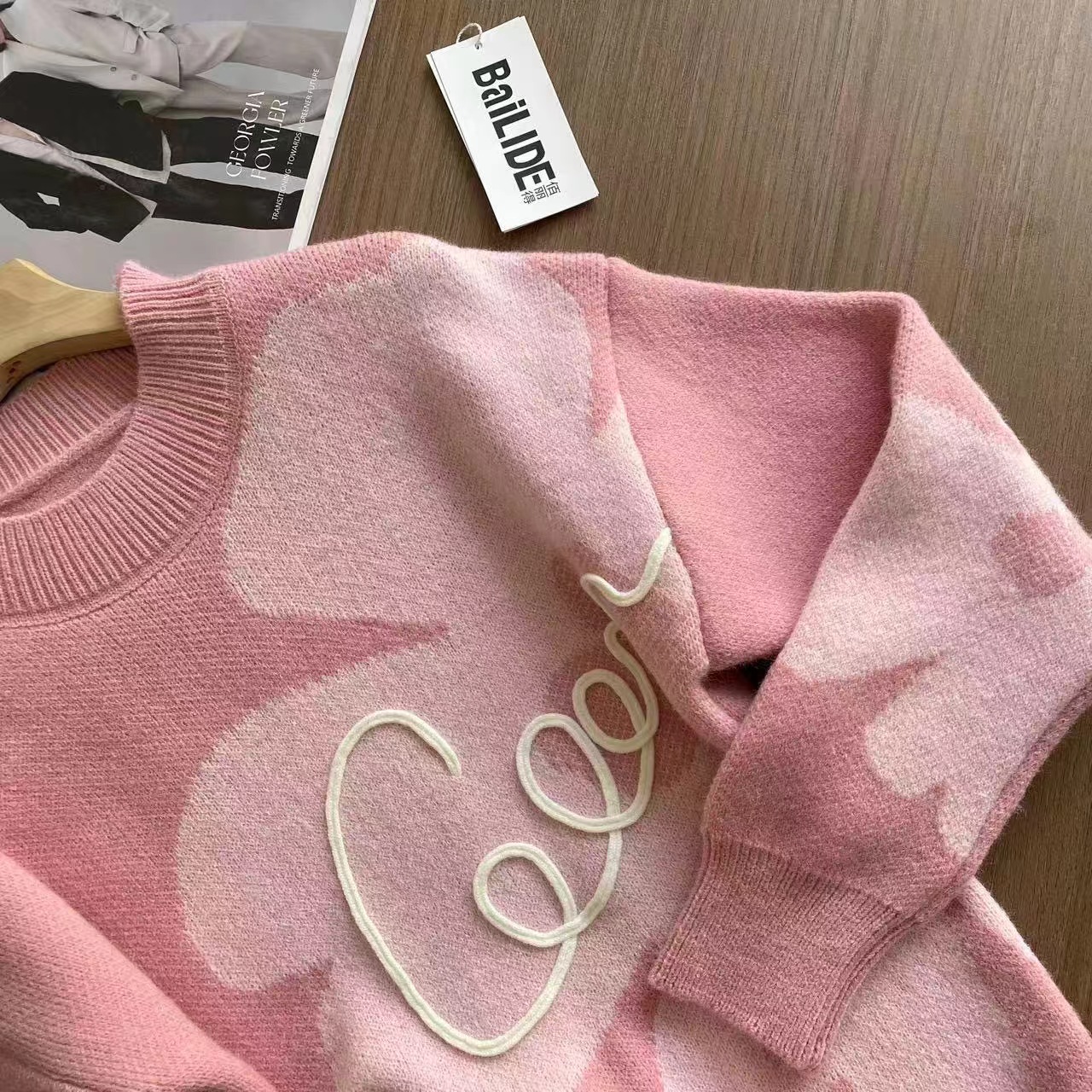🔻很干净清爽的毛衣,衣身袖子的花朵图案装饰!