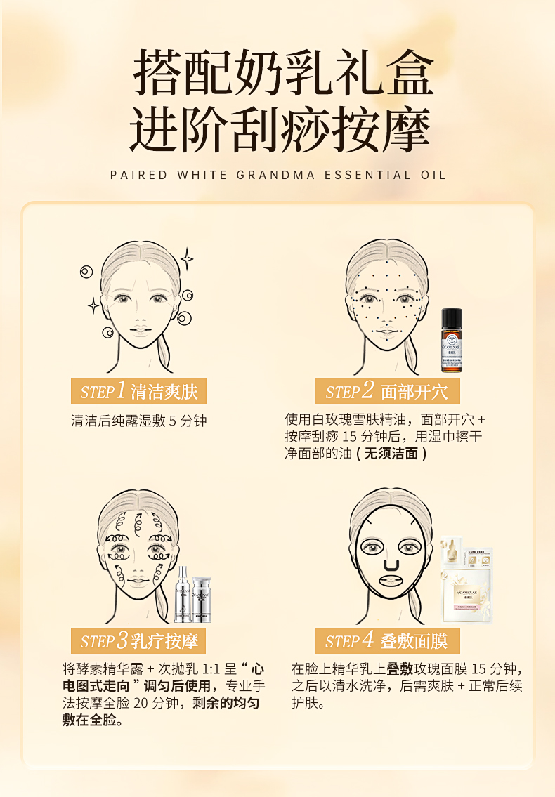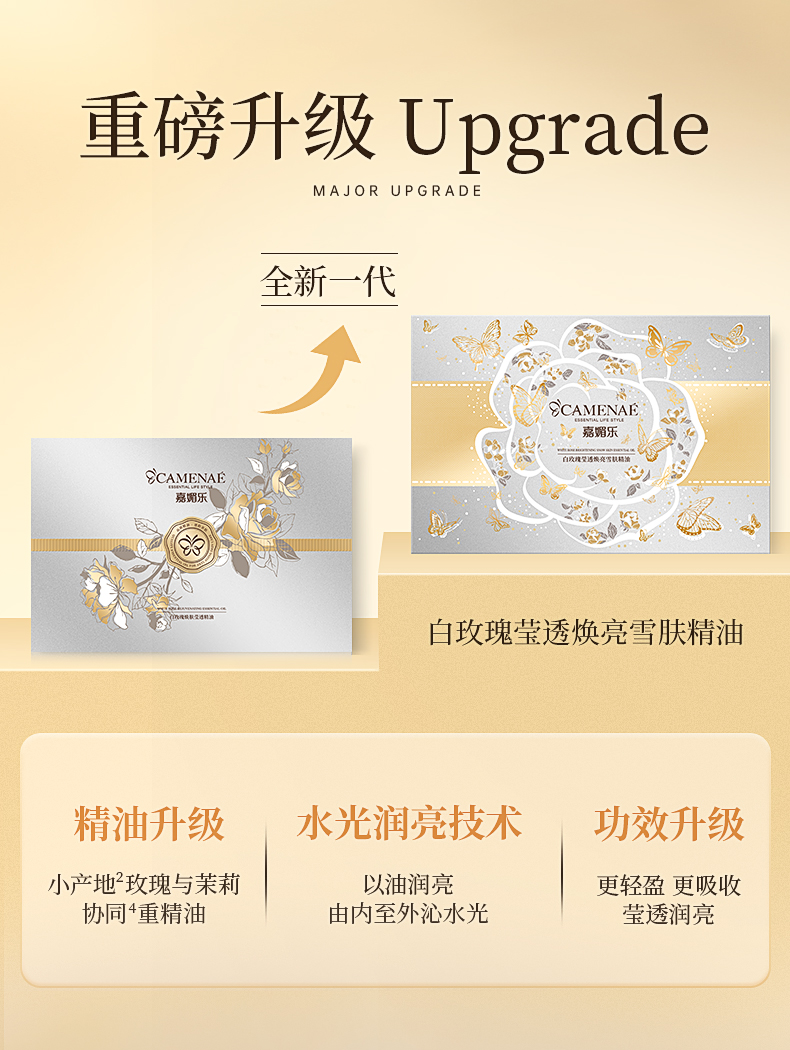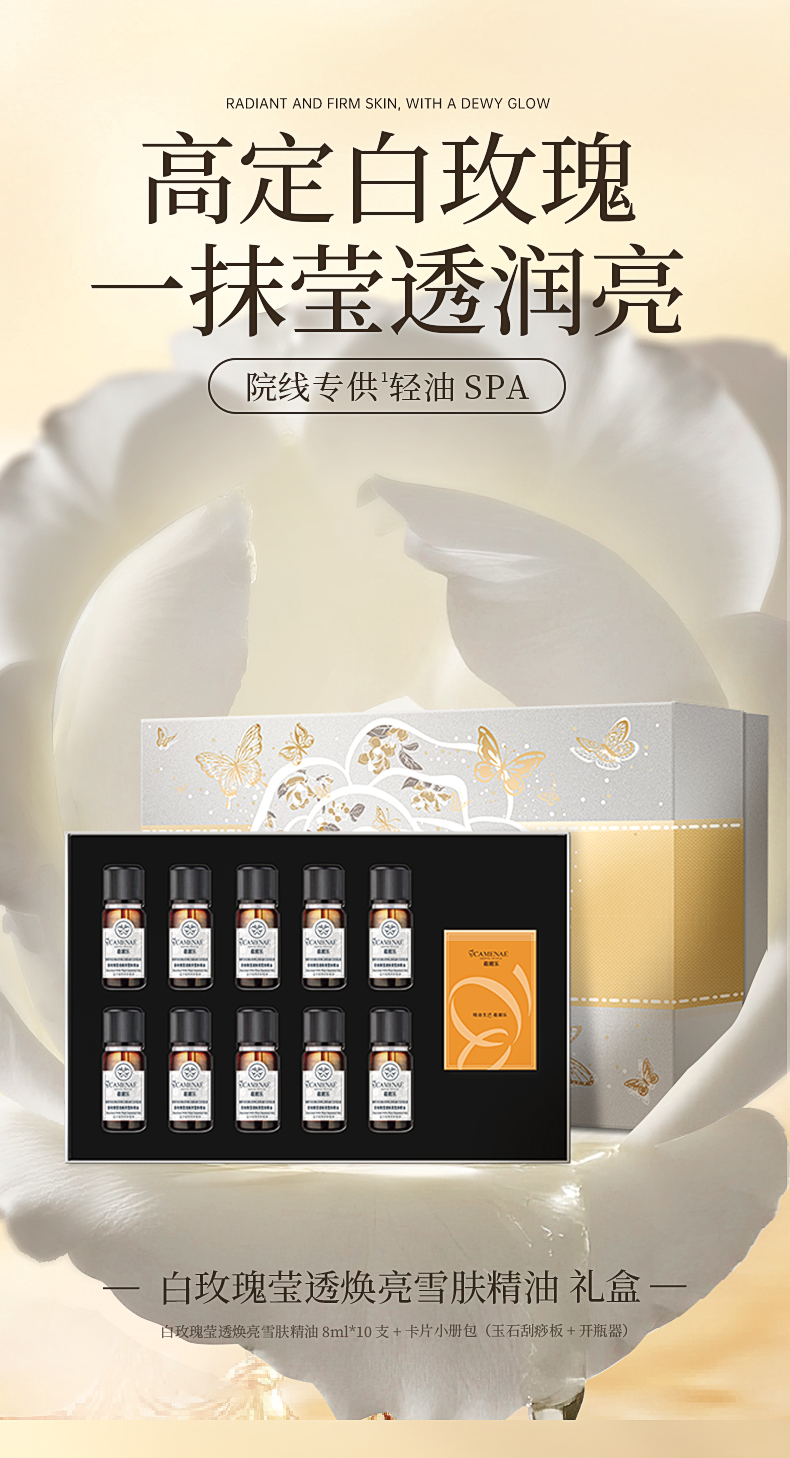 【社群福利】嘉媚乐白爷爷白玫瑰莹透焕亮雪肤精油礼盒 +白奶奶典藏焕肤铂金雪肌SPA礼盒 淡黑焕亮 唤醒发光肌