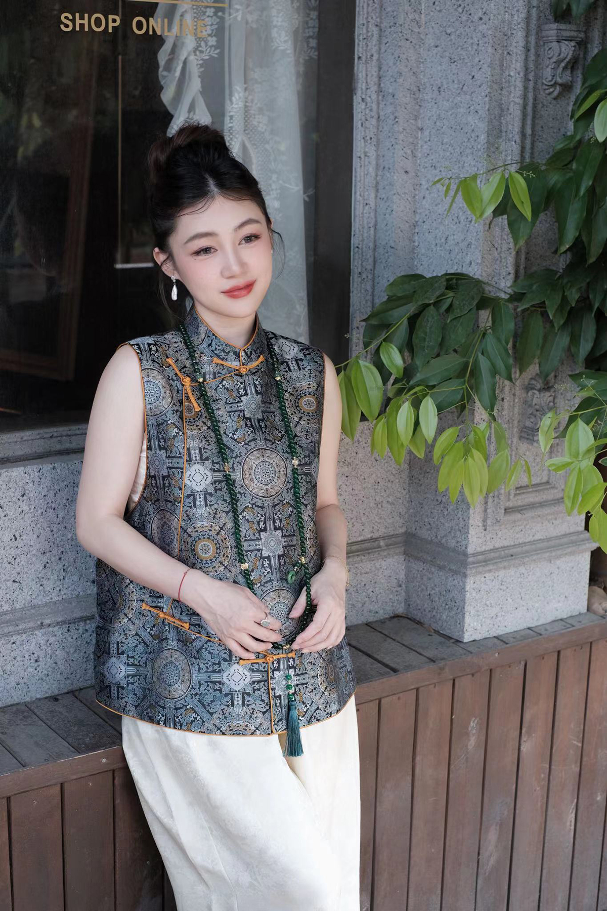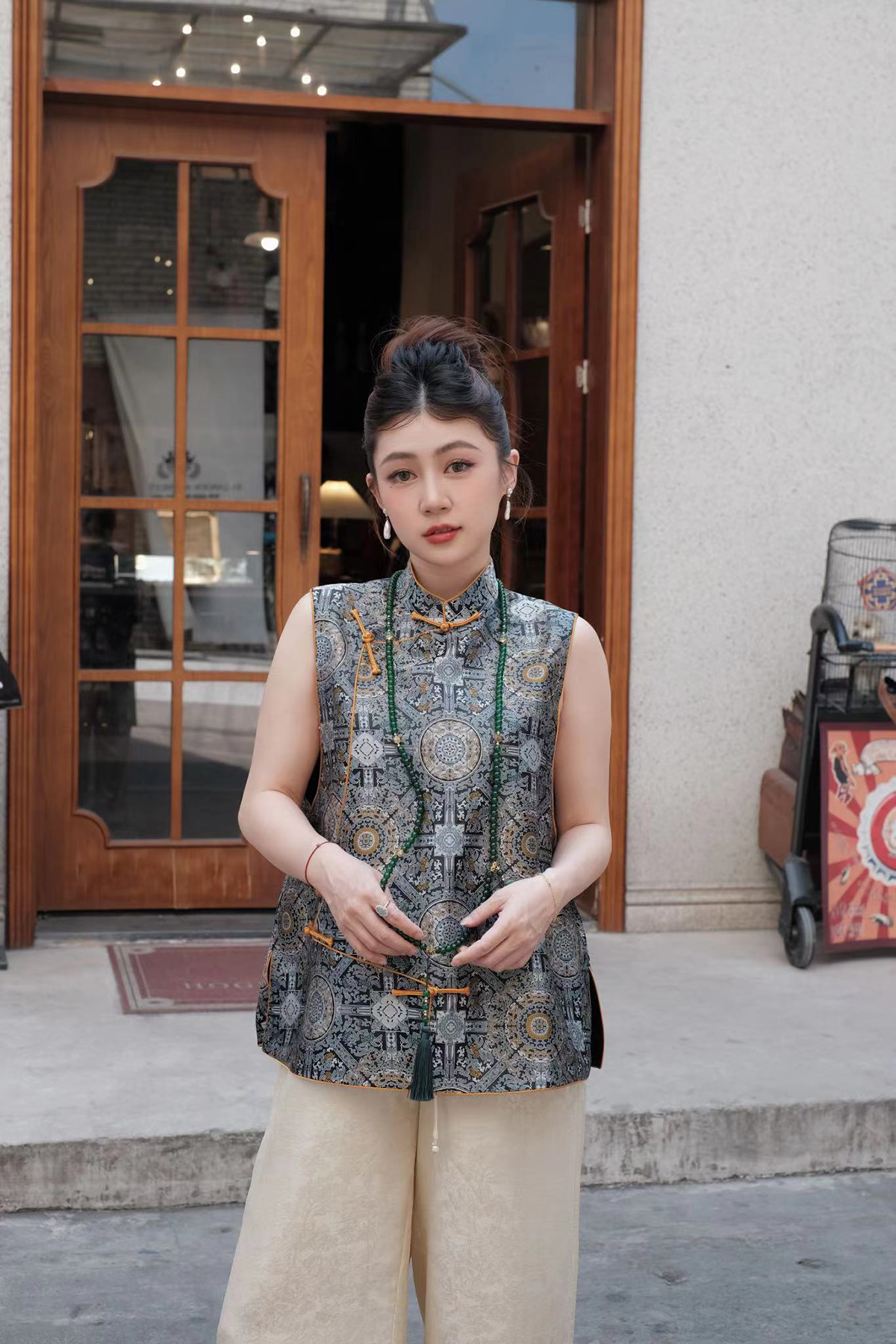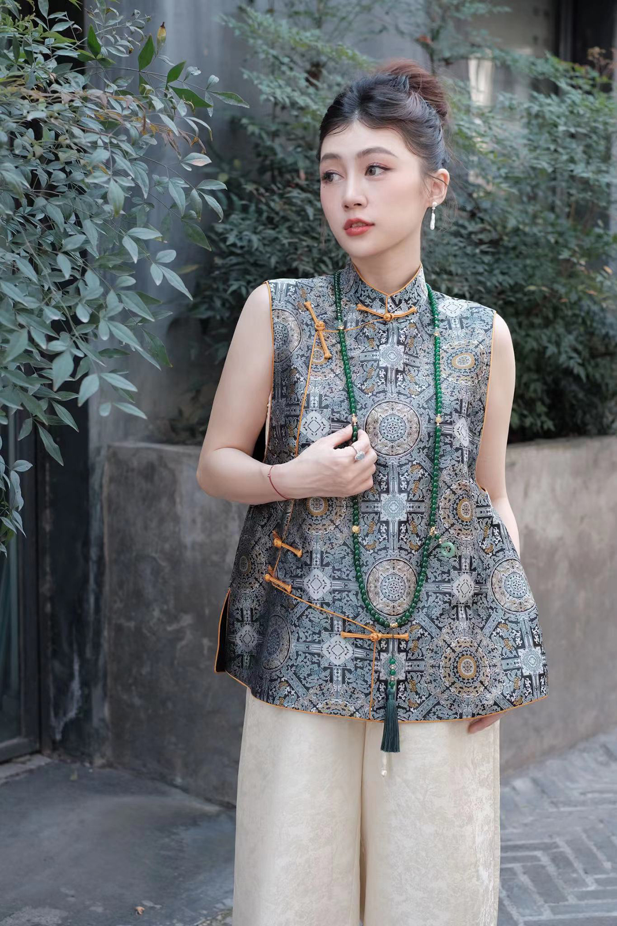 盛唐牡丹 |重缎宋锦八达晕纹偏襟马甲