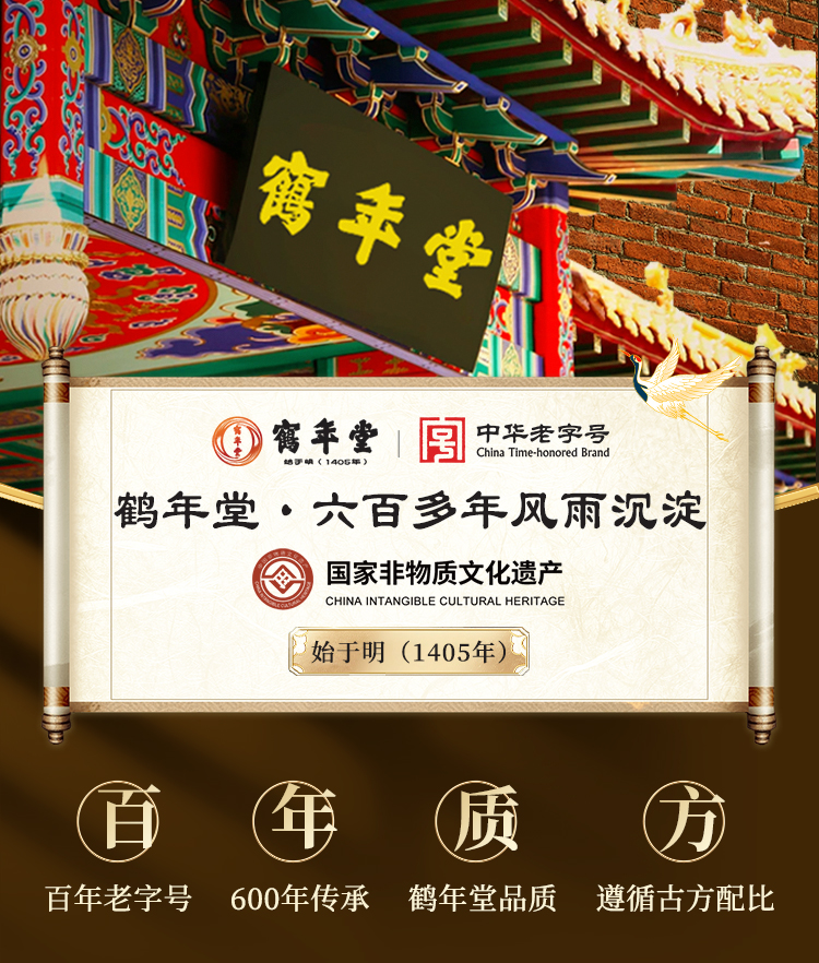 - 传统滋补膏–方北京鹤年堂!鹤年堂成立于1405年,至今615年,是国家非物质文化遗产和中华老字号单位!
