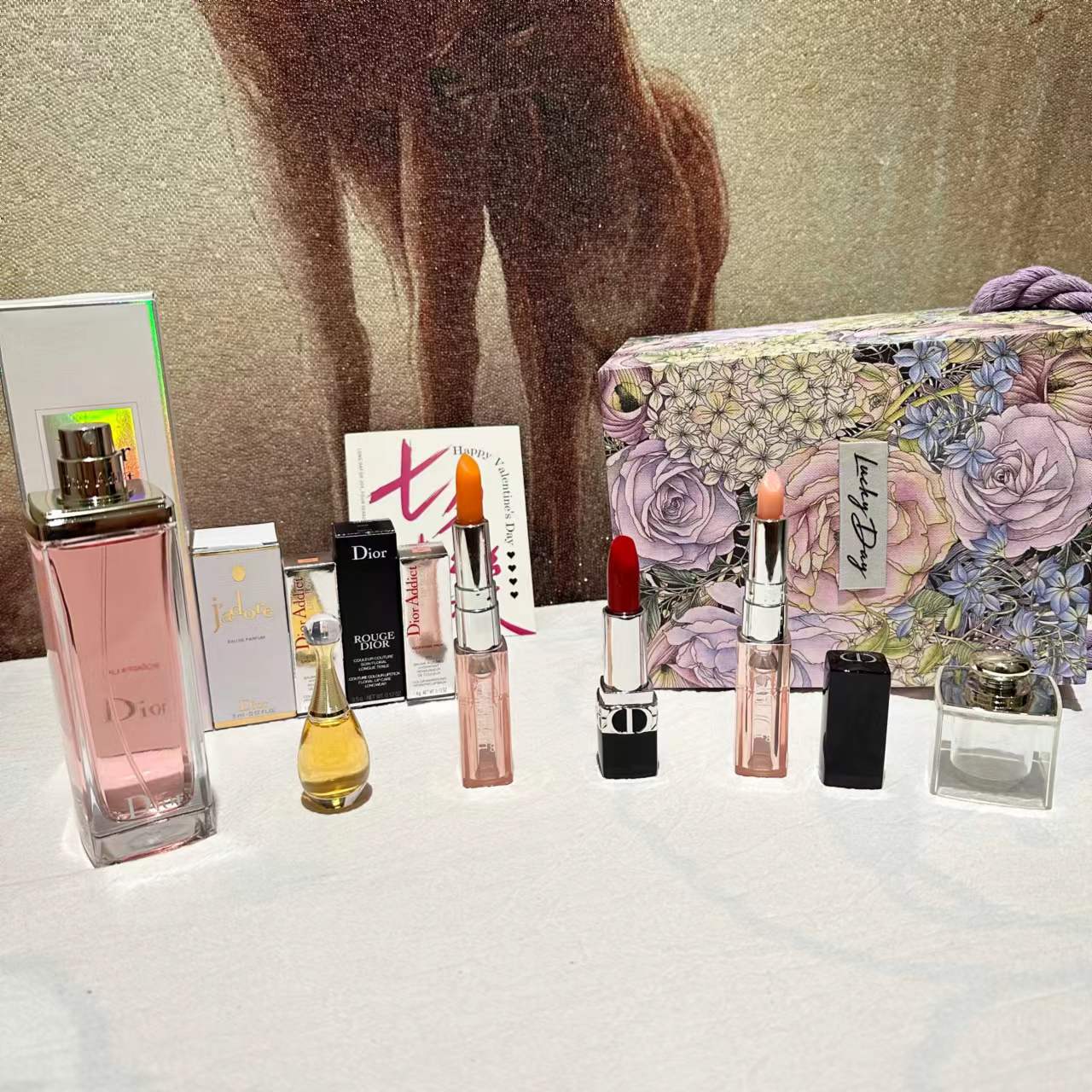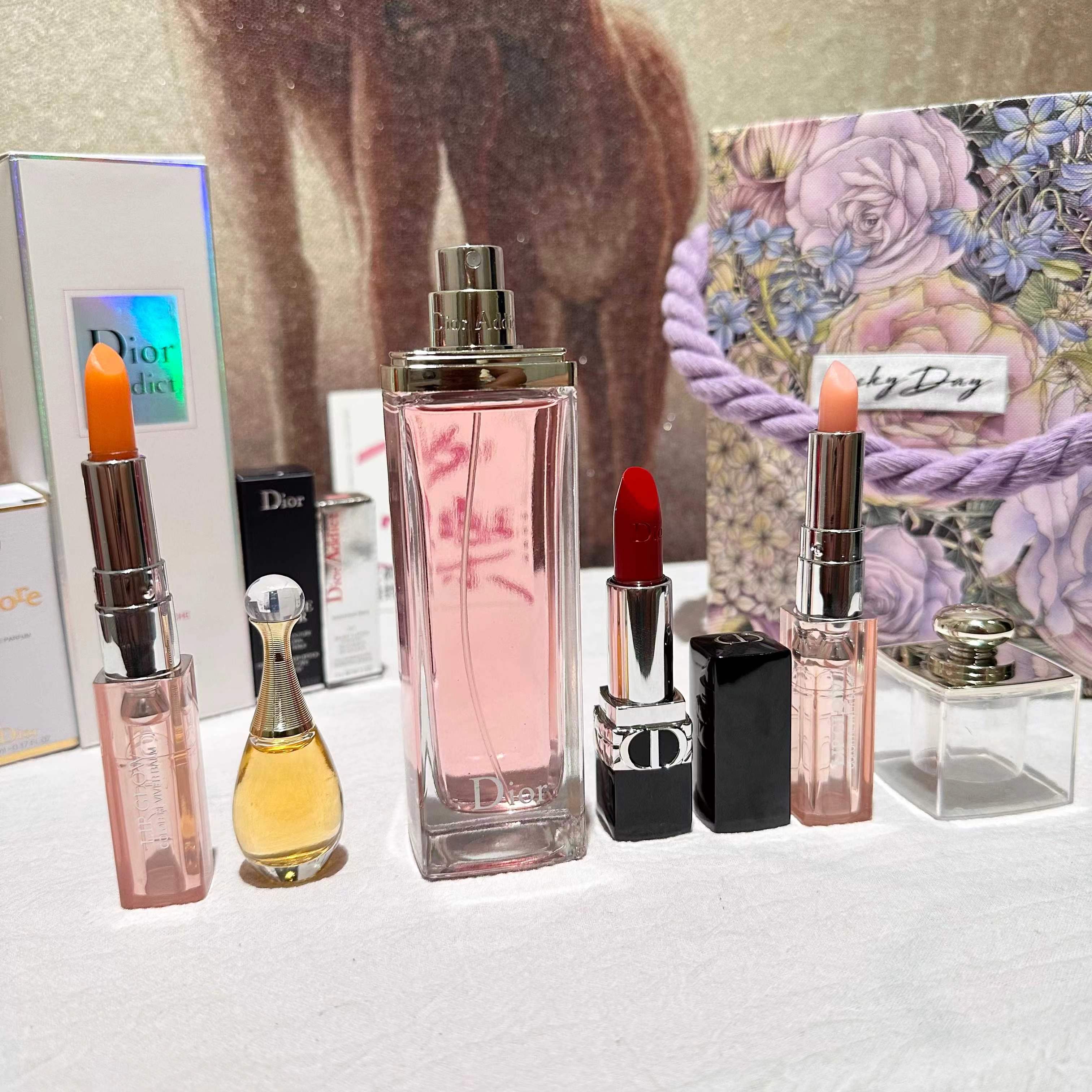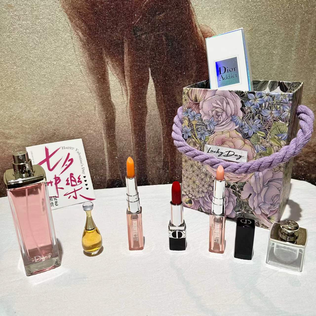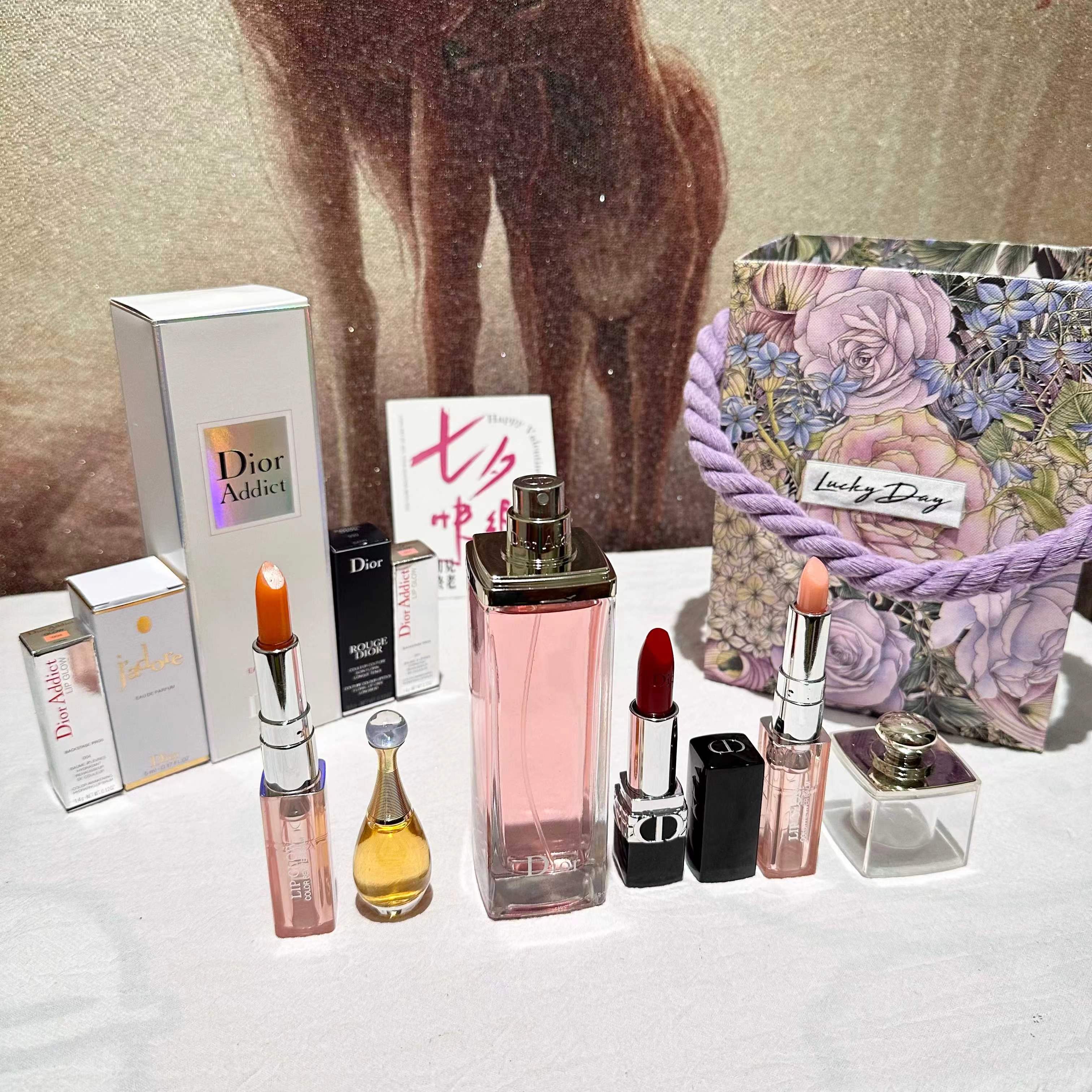 【紫色莫奈花园手拎礼盒】内含 :粉色魅惑香水100ml正装+#999色号口红正装一支+#001变色唇膏小样一支+#004变色唇膏小样一支+真我香氛5ml一瓶+拉菲草+贺卡!没有哪个女人不期待情人节,在特别的日子里,挑选礼物总是费尽心思,让收到礼物的瞬间,仪式感油然而生,成为记忆中熠熠生辉的美好时刻