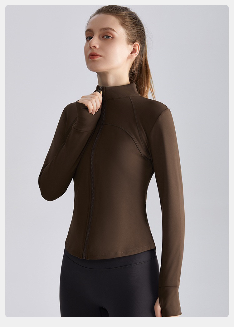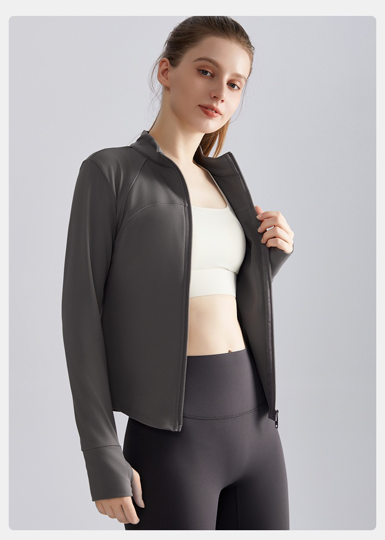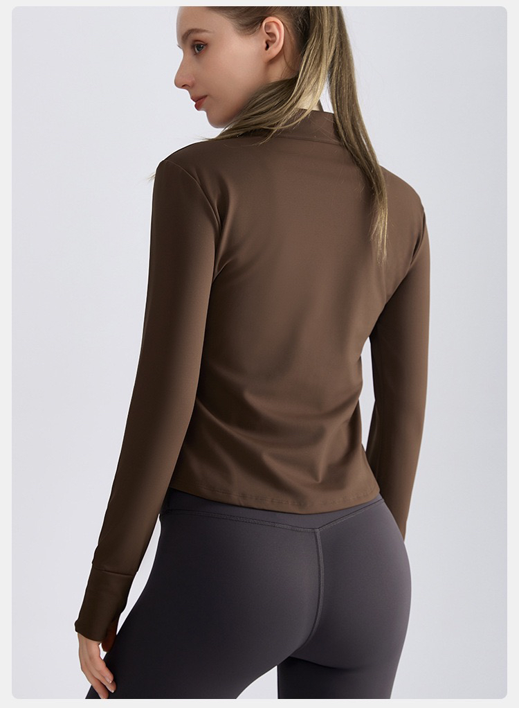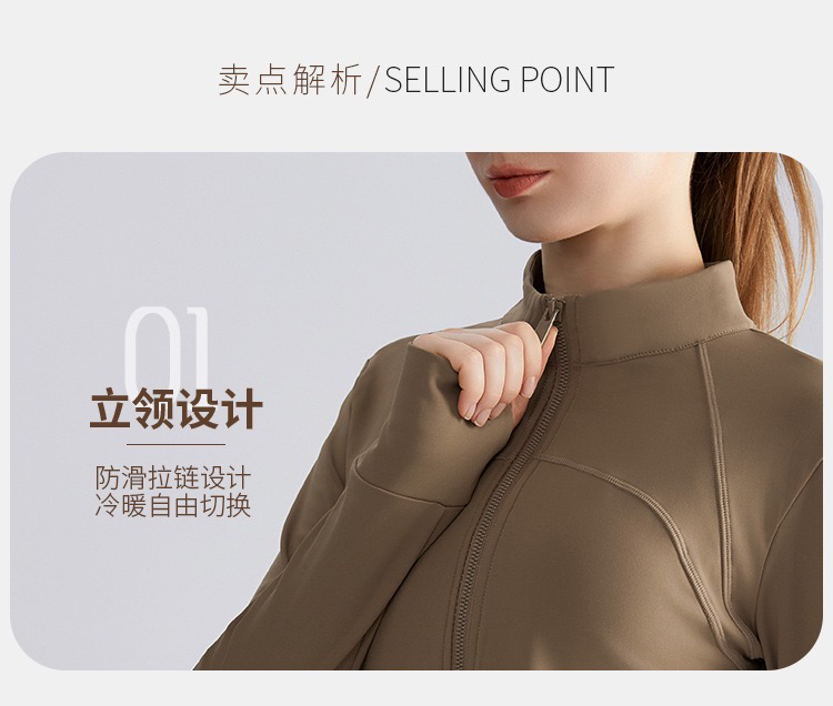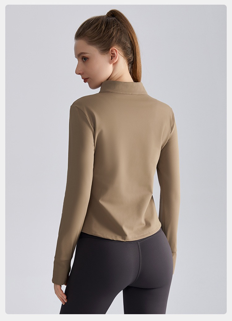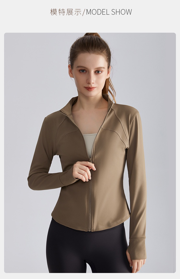 【严选】新款秋收腰修身拉链衫长袖保暖立领瑜伽服上衣 WM WT-050H