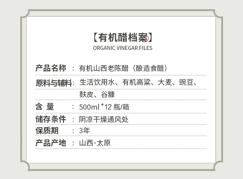 【美和居-国家非遗】有机醋山西老陈醋纯粮特产 500ml*12/箱