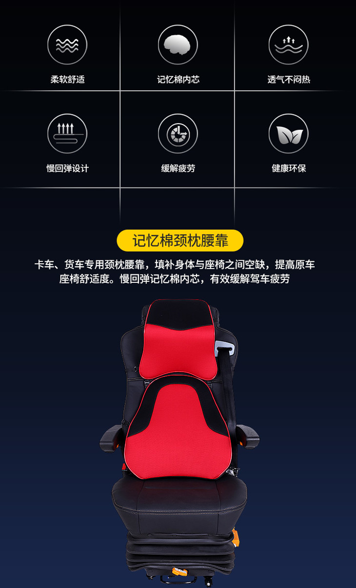 快手专享 卡货车座椅专用靠垫 腰靠头枕套装 司机必备 记忆棉 安全舒适