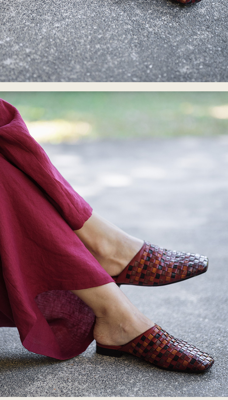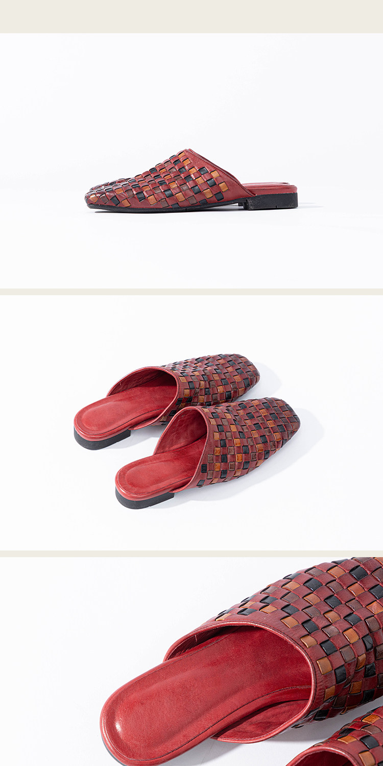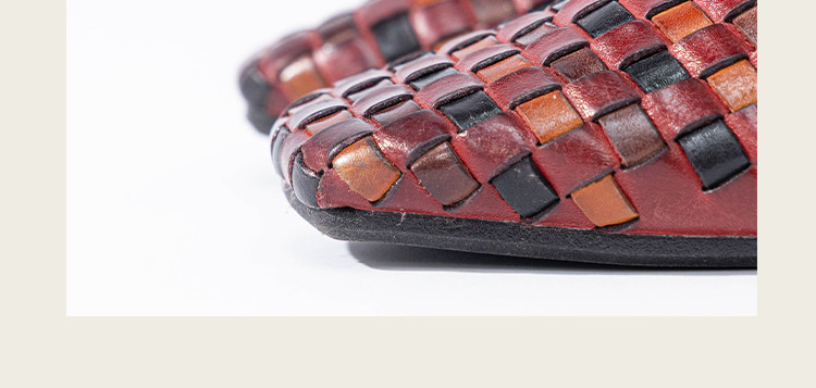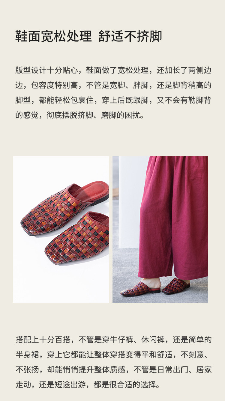 绽放/LSX017朵织出一缕红*新款纯牛皮手工编织撞色方格一脚蹬皮鞋