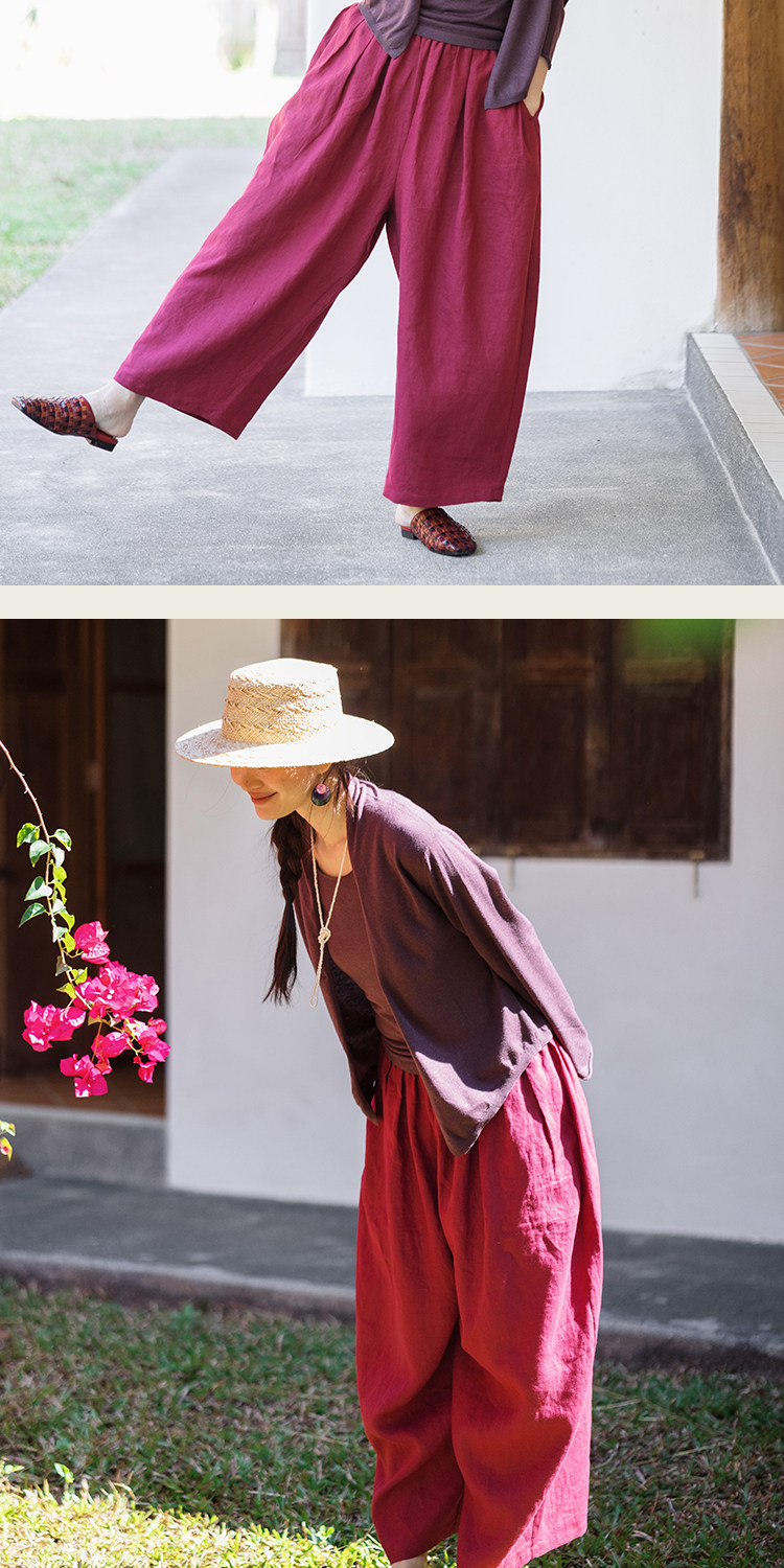 以天然亚麻为载体,融合热烈色彩与自在剪裁为身在城市、心怀远方的女性提供兼具美学与舒适的旅行着装