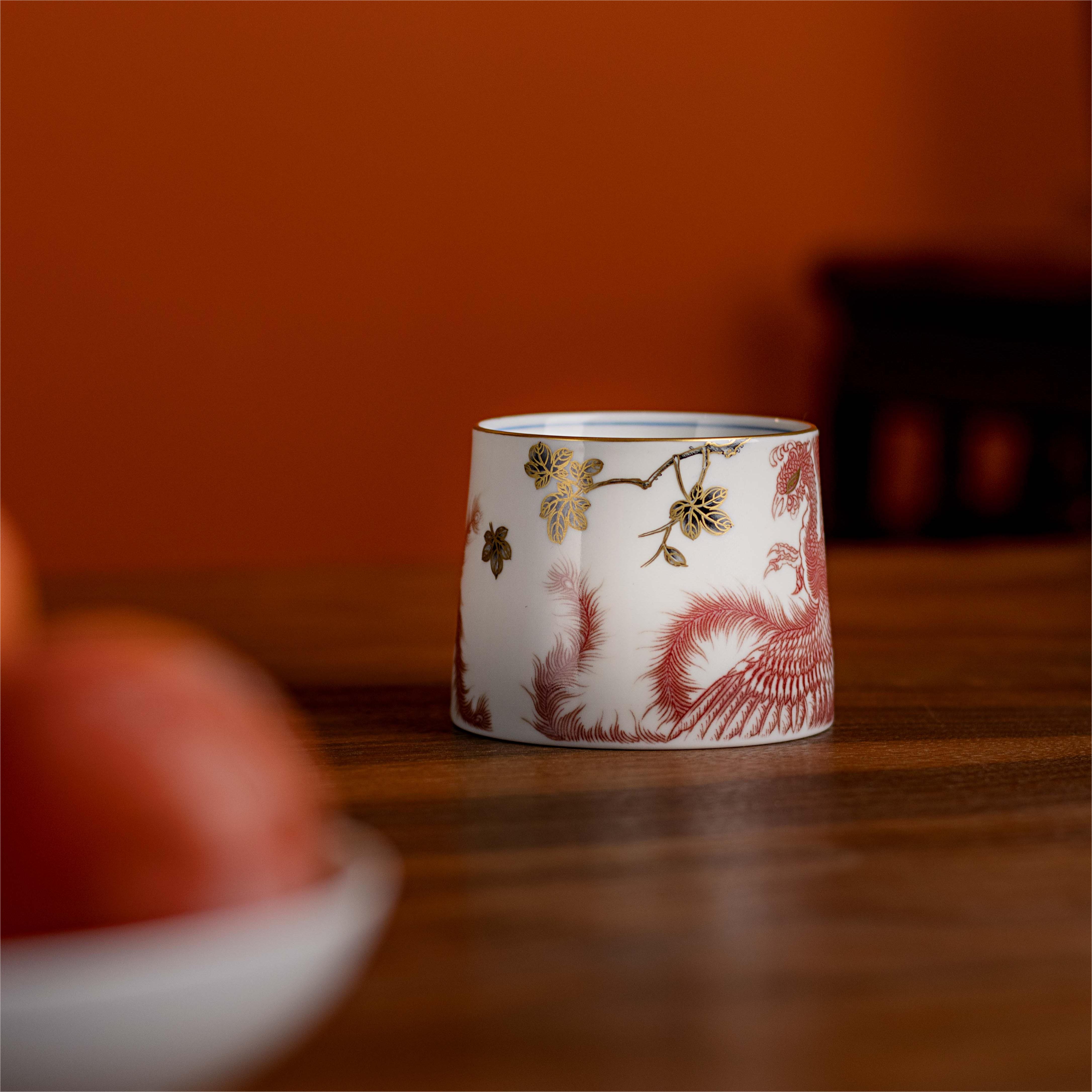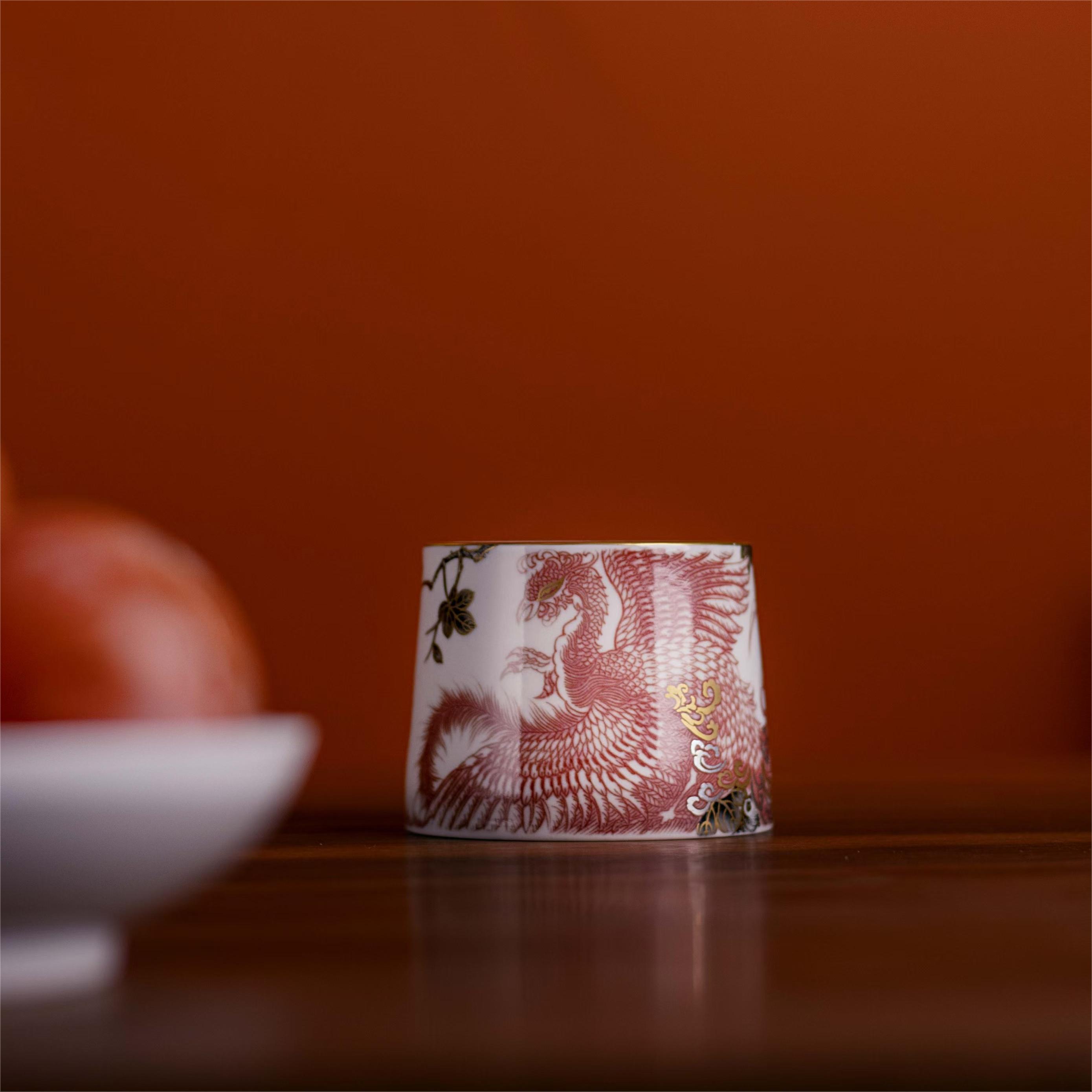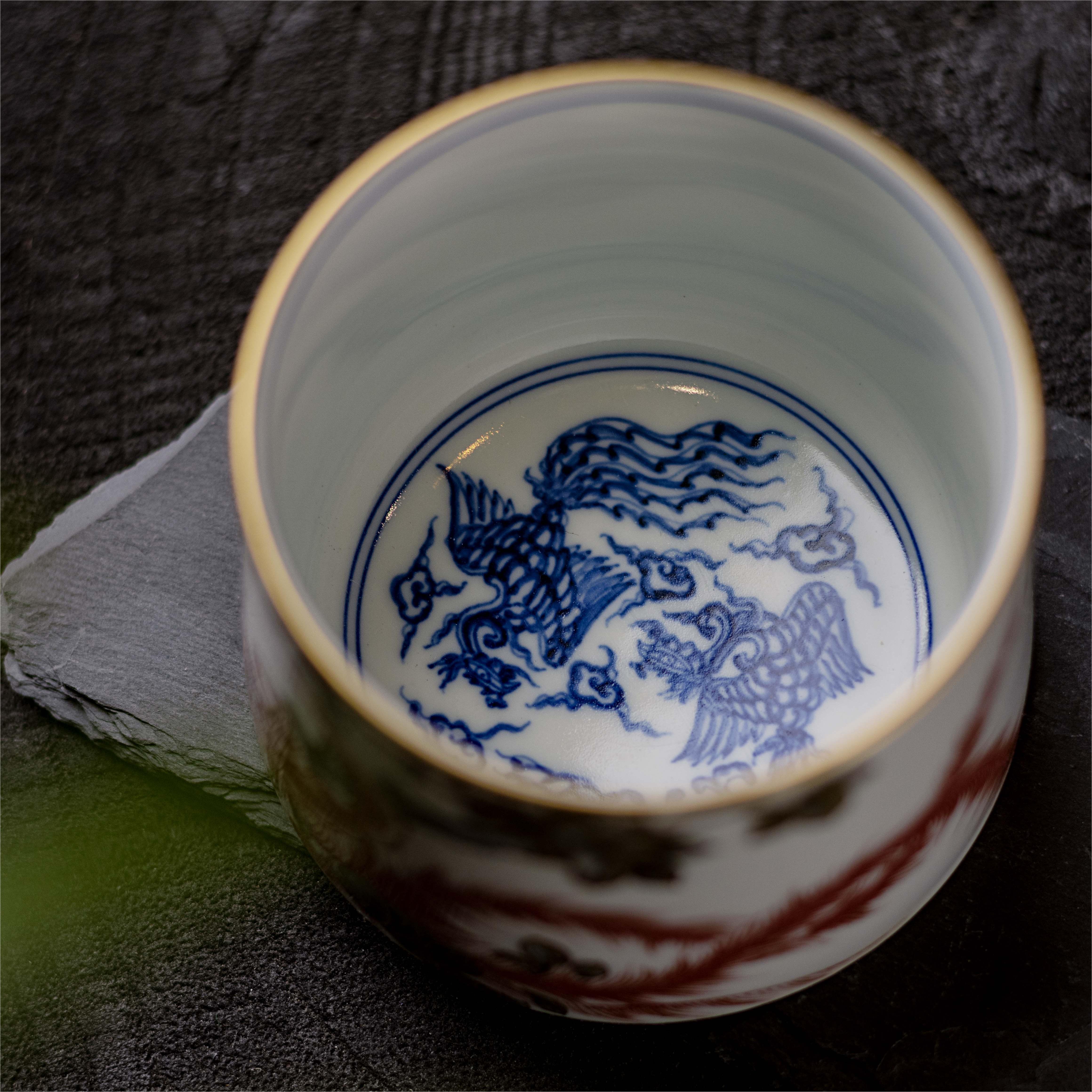 一儒堂釉里红墨彩描金朱雀品茗杯
