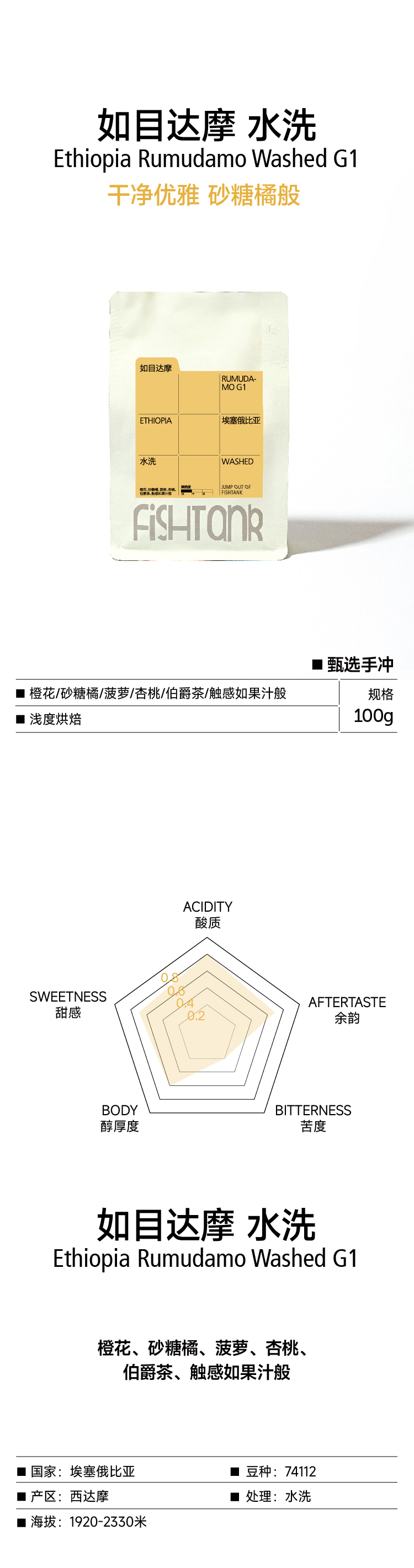 埃塞 如目达摩 水洗 G1 甄选手冲咖啡豆