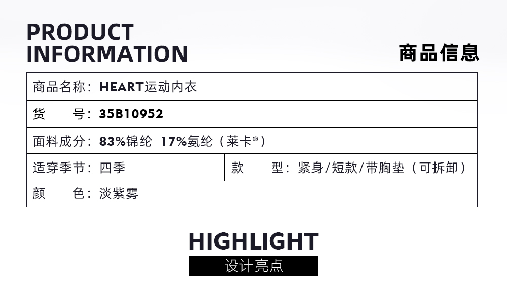 TITIKA ACTIVE运动内衣中强度防震健身跑步透气瑜伽背心文胸可外穿 Heart10952