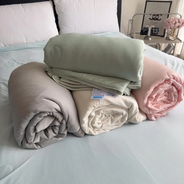 不是那种冰得刺骨的凉,是温柔的瞬凉感,上手丝滑软糯,像把云朵盖在身上☁️