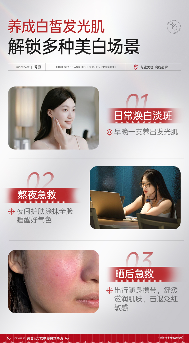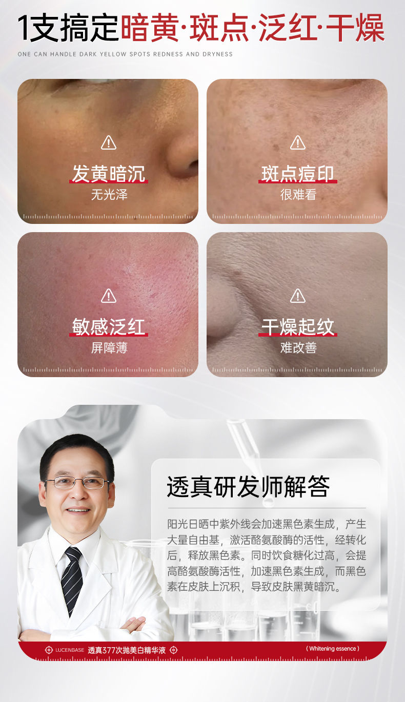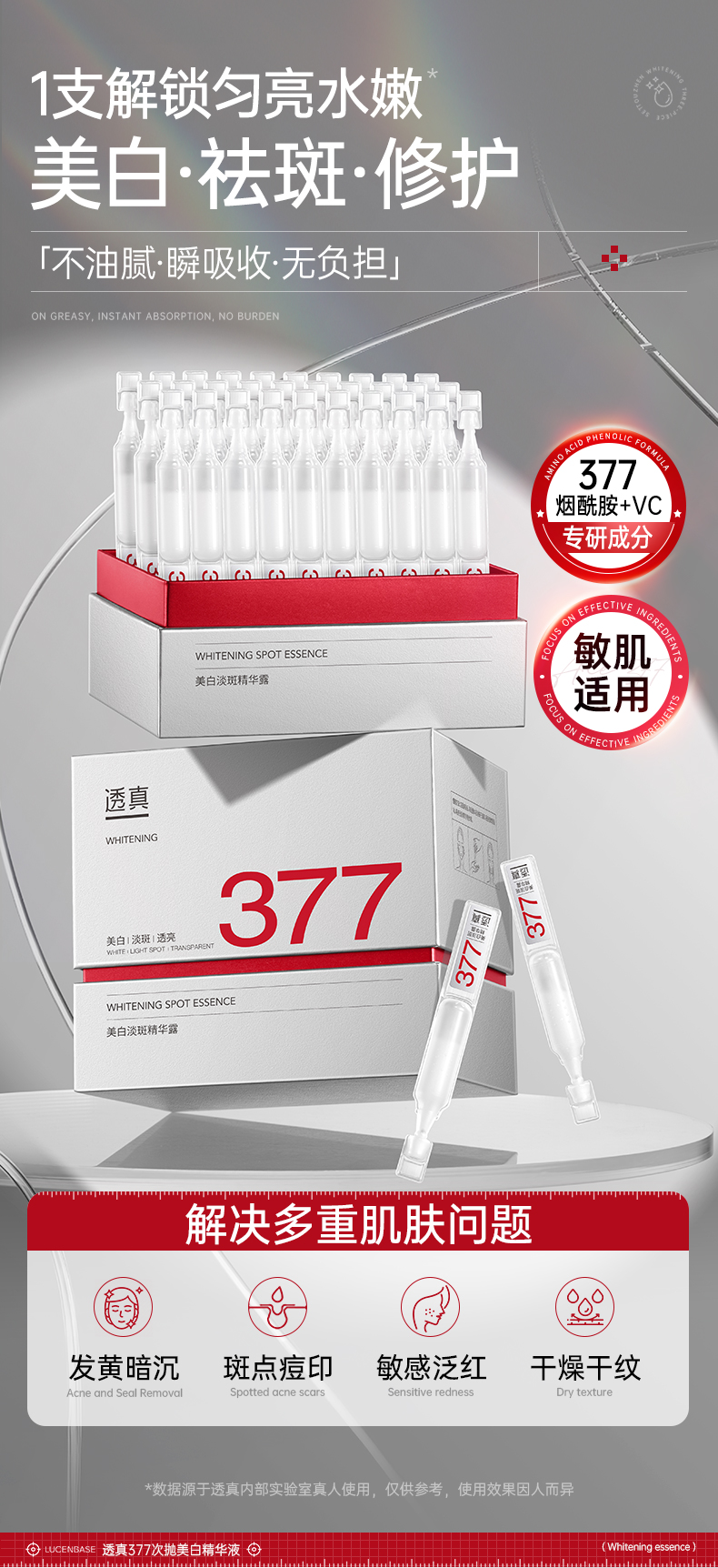 【1抹美白不反黑 狙击黄·暗·斑】377美白精华液次抛烟酰胺VC淡斑抗氧化提亮去黄改善暗沉肤色官方
