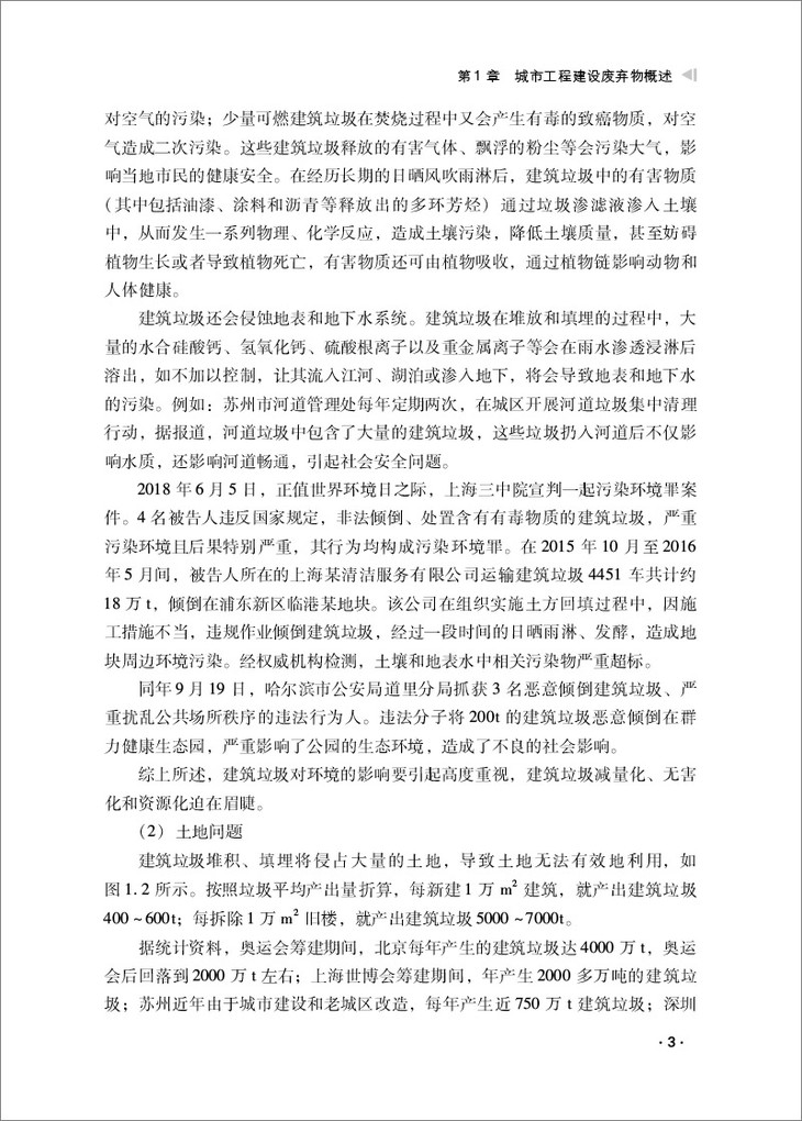 本书的编写分为资料收集、素材整理、分类编写、专家论证等几个阶段,其间广泛听取了各级行政管理部门、企业及有关专家的意见和建议。本书包括城市工程建设废弃物概述,建筑垃圾、工程渣土、城市污泥、废旧沥青路面材料的资源化利用,城市废弃物资源化利用相关政策法律法规体系,城市废弃物管理措施7个部分。书中涉及全国多个城市的实践经验,并结合最新发布的《建筑垃圾处理技术标准》(CJJ/T134—2019)以及《建筑垃圾资源化利用技术指南》的相关规定,对目前城市工程建设废弃物资源化利用的现状及如何规范相关技术做了详尽的介绍。