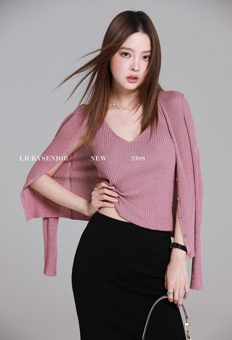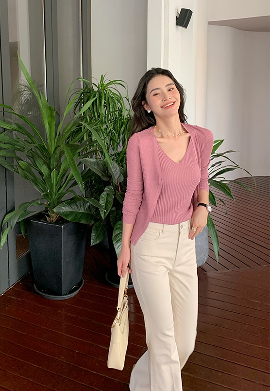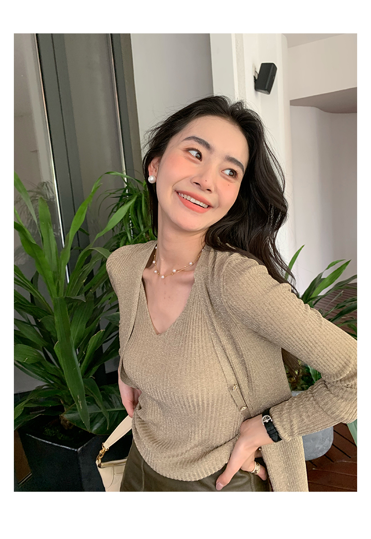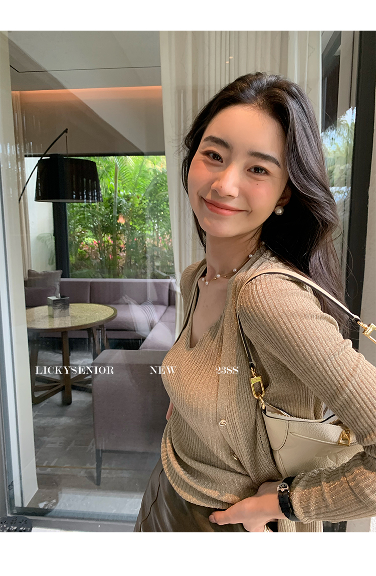 开衫H型廓形,塑形立体,线条流畅,修身不紧绷,衬出娇小唯美的身姿,搭配高腰下装,easy穿出胸以下”荃是腿”的既视感。