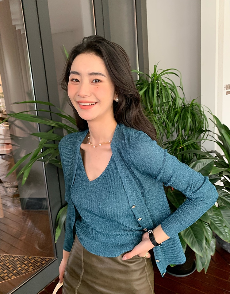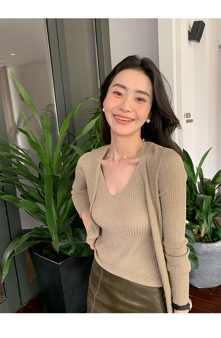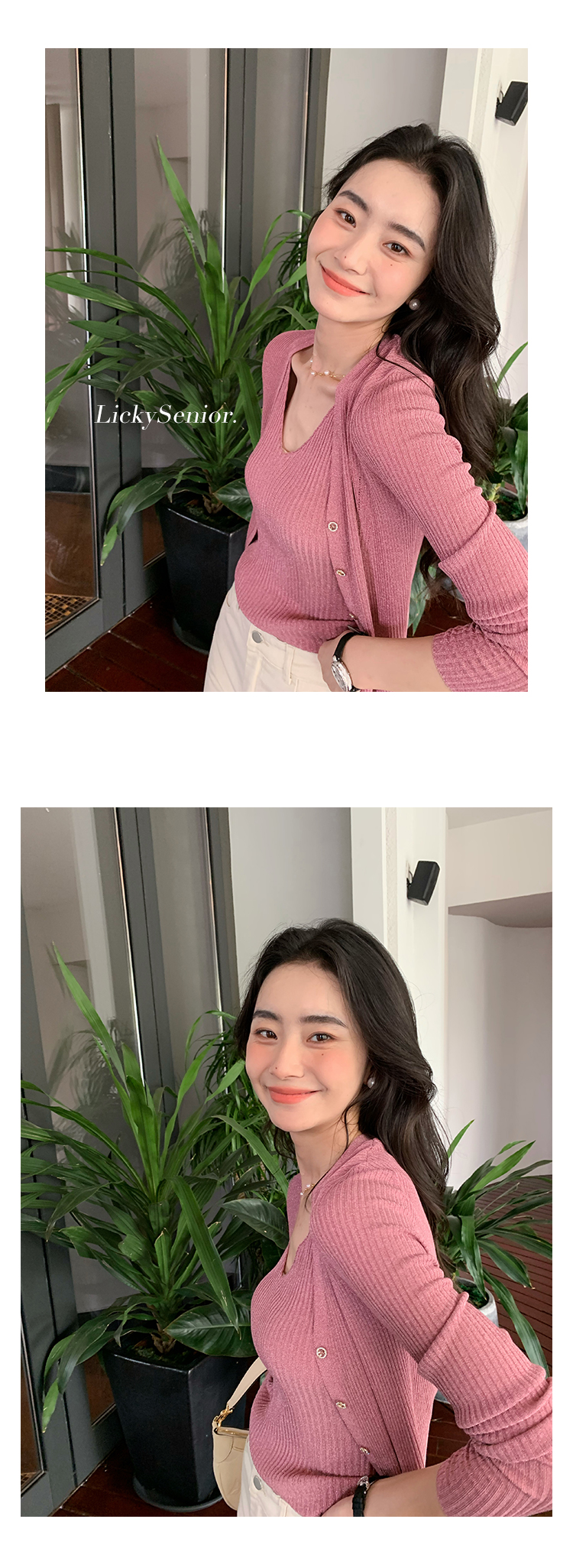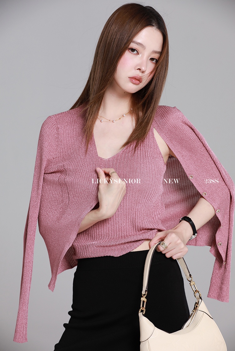 开衫H型廓形,塑形立体,线条流畅,修身不紧绷,衬出娇小唯美的身姿,搭配高腰下装,easy穿出胸以下”荃是腿”的既视感。