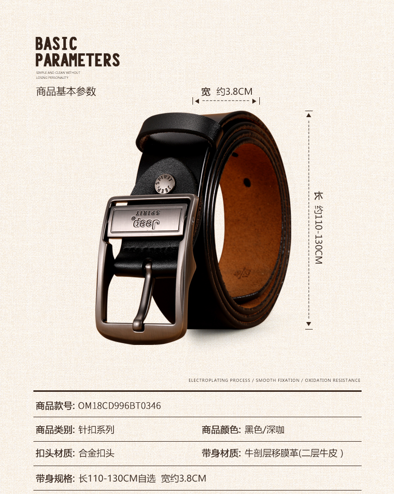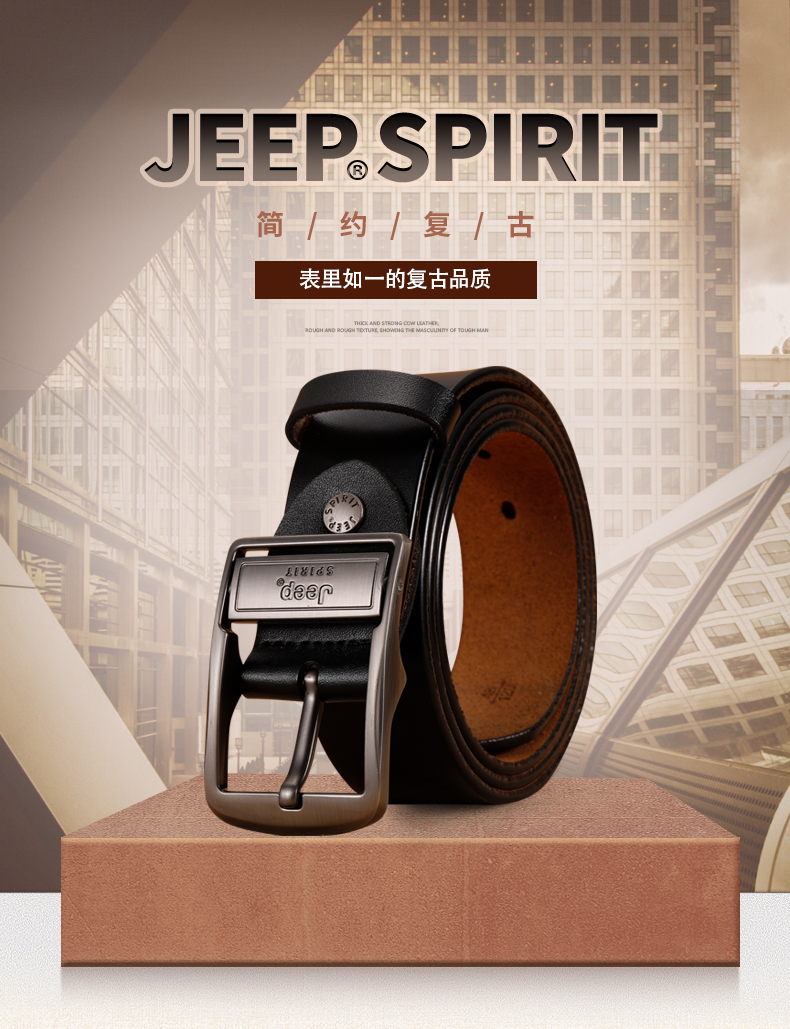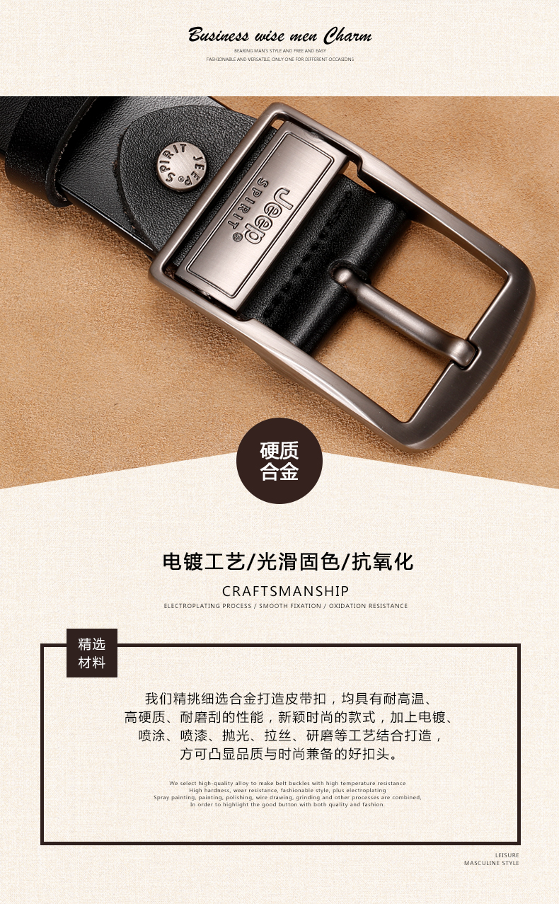 【专属】JEEP SPIRIT【男士皮带针扣皮带】英伦风尚经典系列,精美礼盒 休闲商务任你切换!