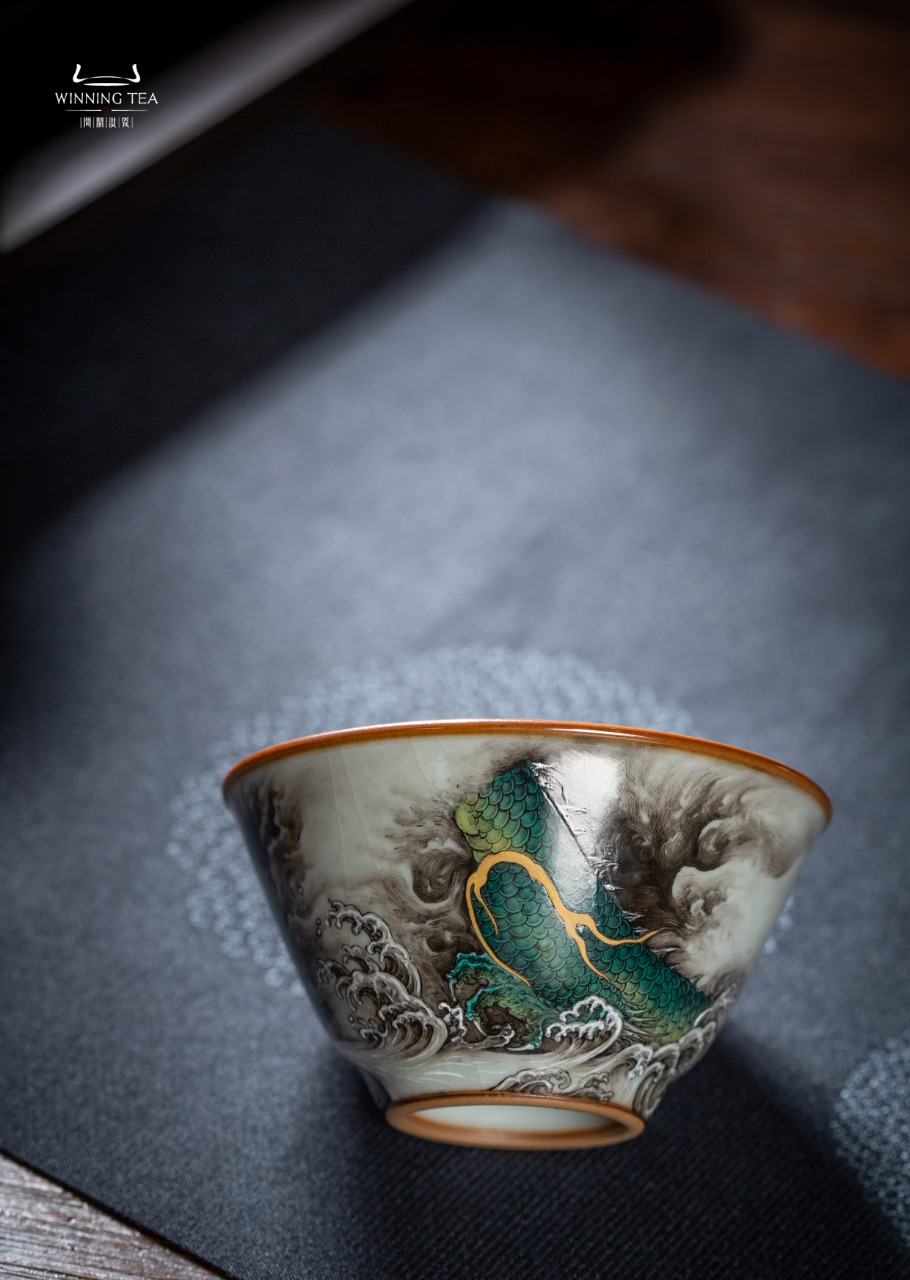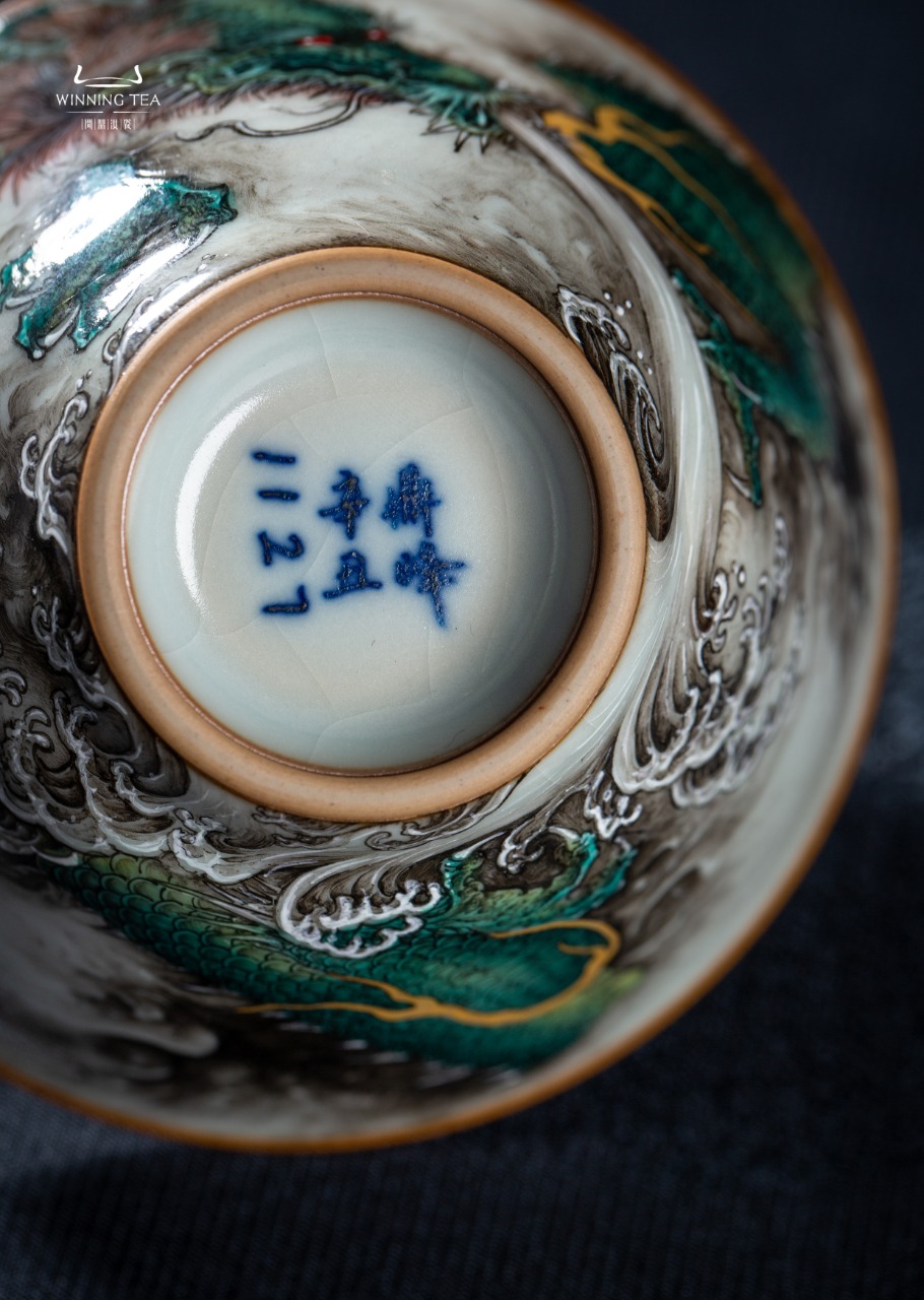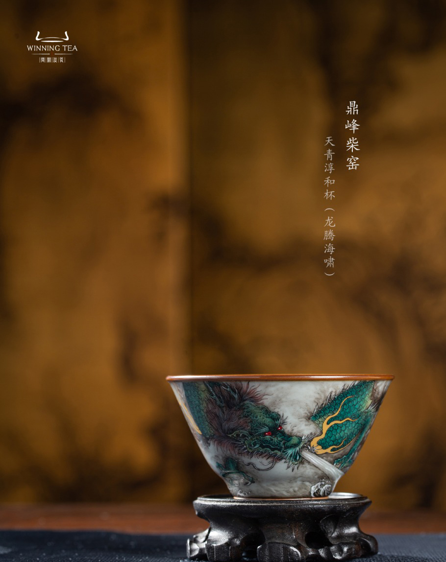 问鼎汝瓷鼎峰柴窑天青淳和杯(龙腾海啸)
