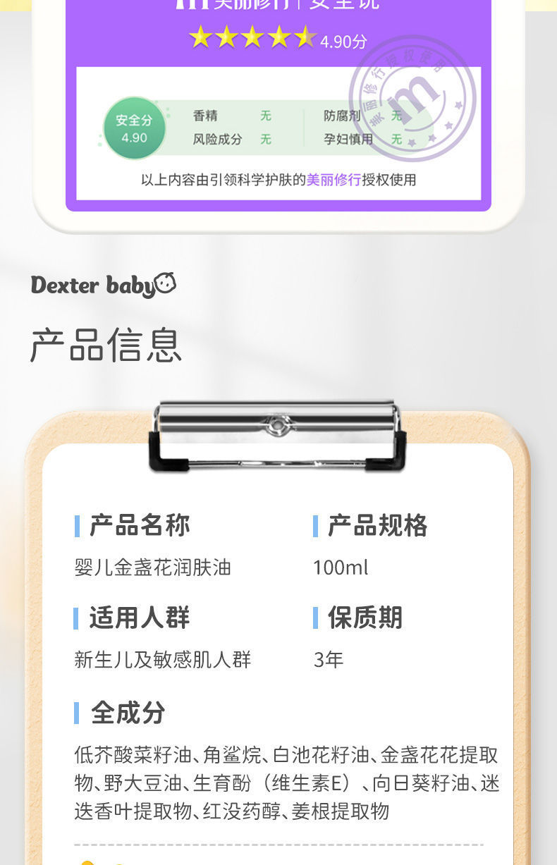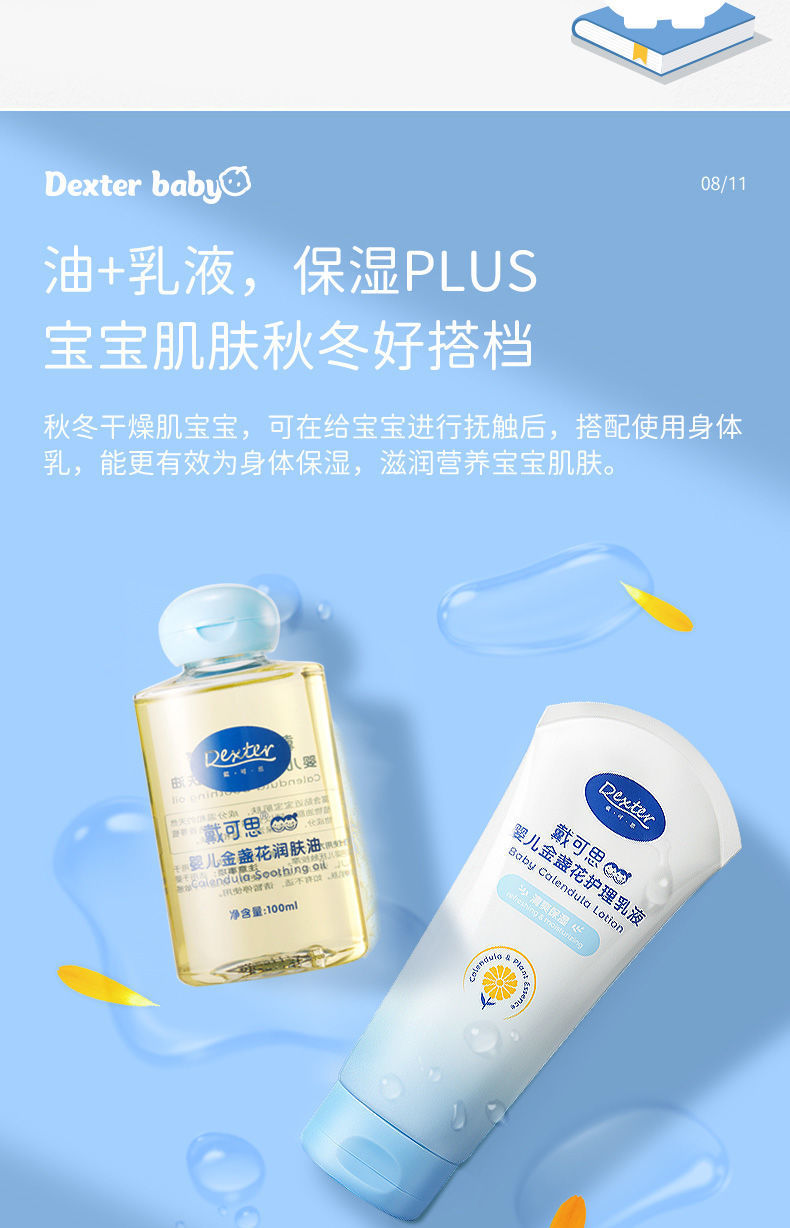 戴可思婴儿润肤油儿童金盏花按摩油宝宝抚触油