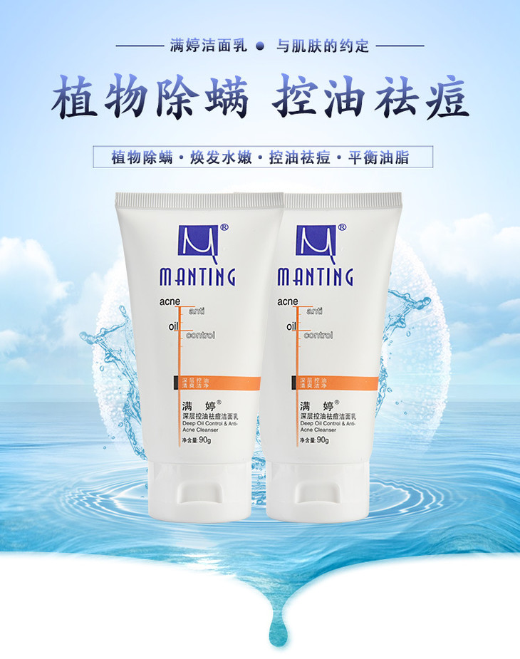 〖植物除螨 控油祛痘〗满婷洗面奶女泡沫丰富清洁学生控油清爽洗面奶90g