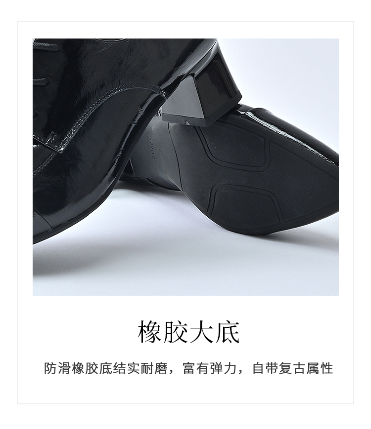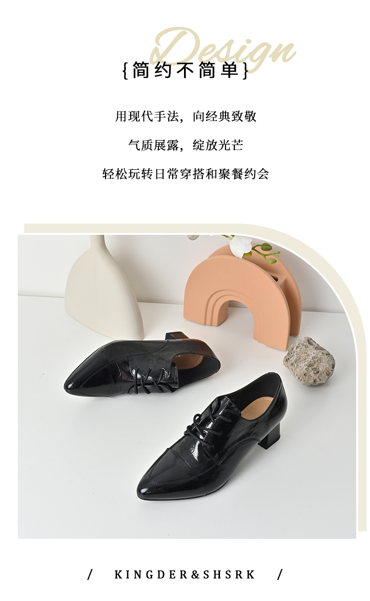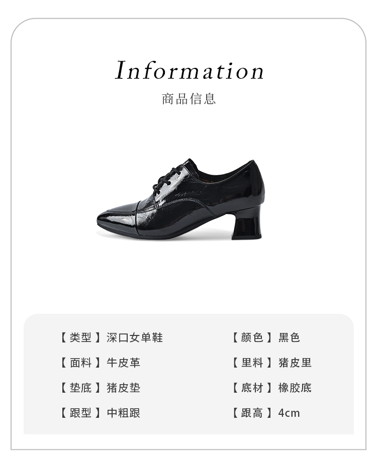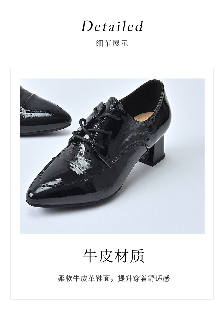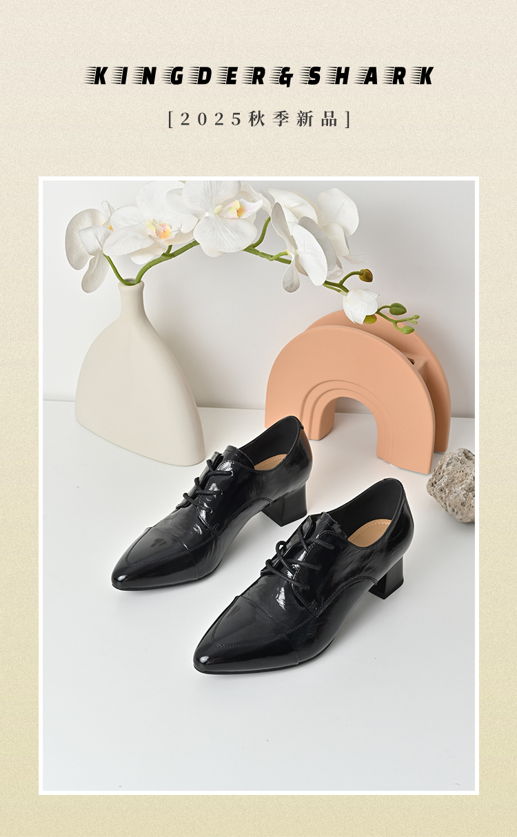 经典鲨2025秋季专柜新品牛皮革黑色气质中粗跟单鞋小皮鞋女KW117-537091