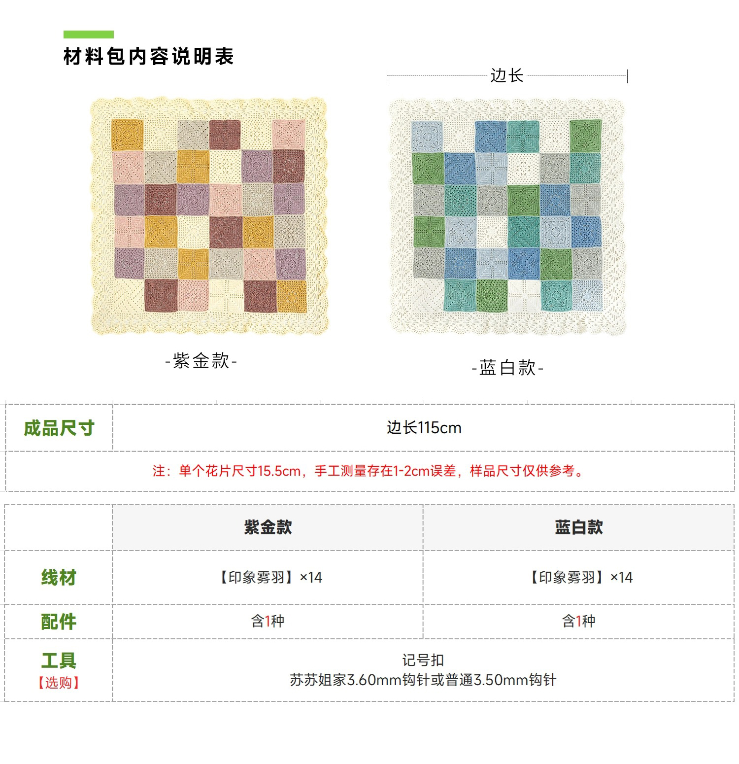 苏苏姐家晓雾拼花毯手工DIY编织钩针家居毛线毛线团自制材料包