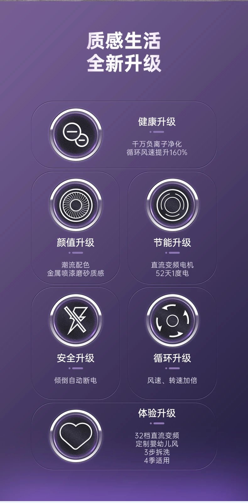 风速档位:32档风量+1键婴儿风+1键幼儿风