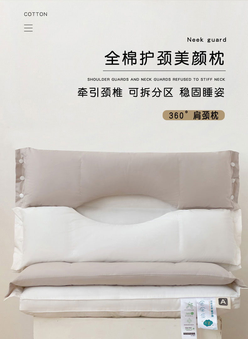 笙观相沐三合一全棉护颈美颜枕 牵引颈椎 可拆分区 稳固睡姿 舒适透气