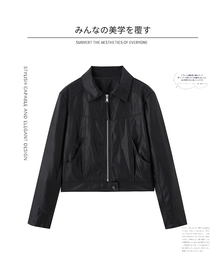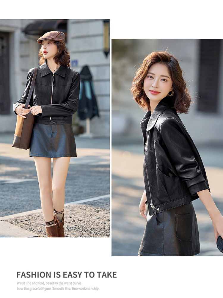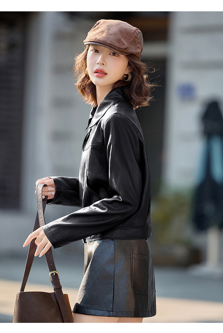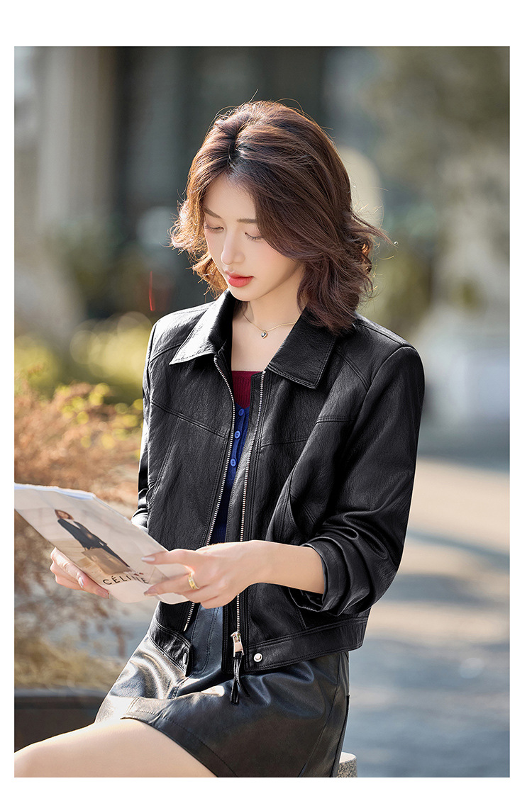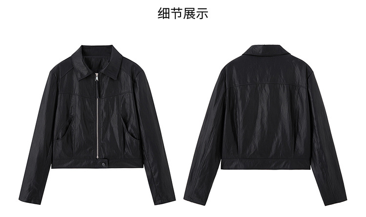 MEIQIN5711时尚美拉德翻领皮衣外套女2025春秋新款复古皮夹克显瘦短款上衣 商品图0