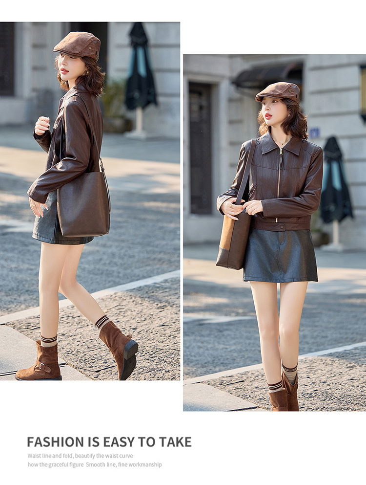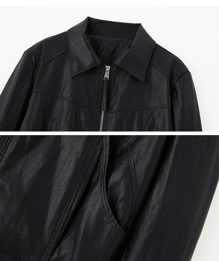 MEIQIN5711时尚美拉德翻领皮衣外套女2025春秋新款复古皮夹克显瘦短款上衣 商品图4