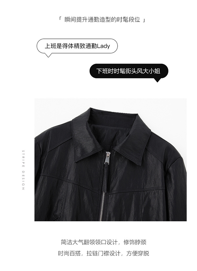 MEIQIN5711时尚美拉德翻领皮衣外套女2025春秋新款复古皮夹克显瘦短款上衣 商品图3