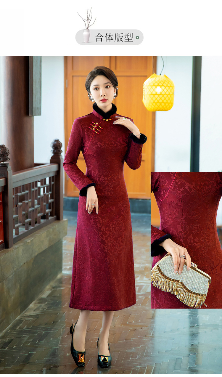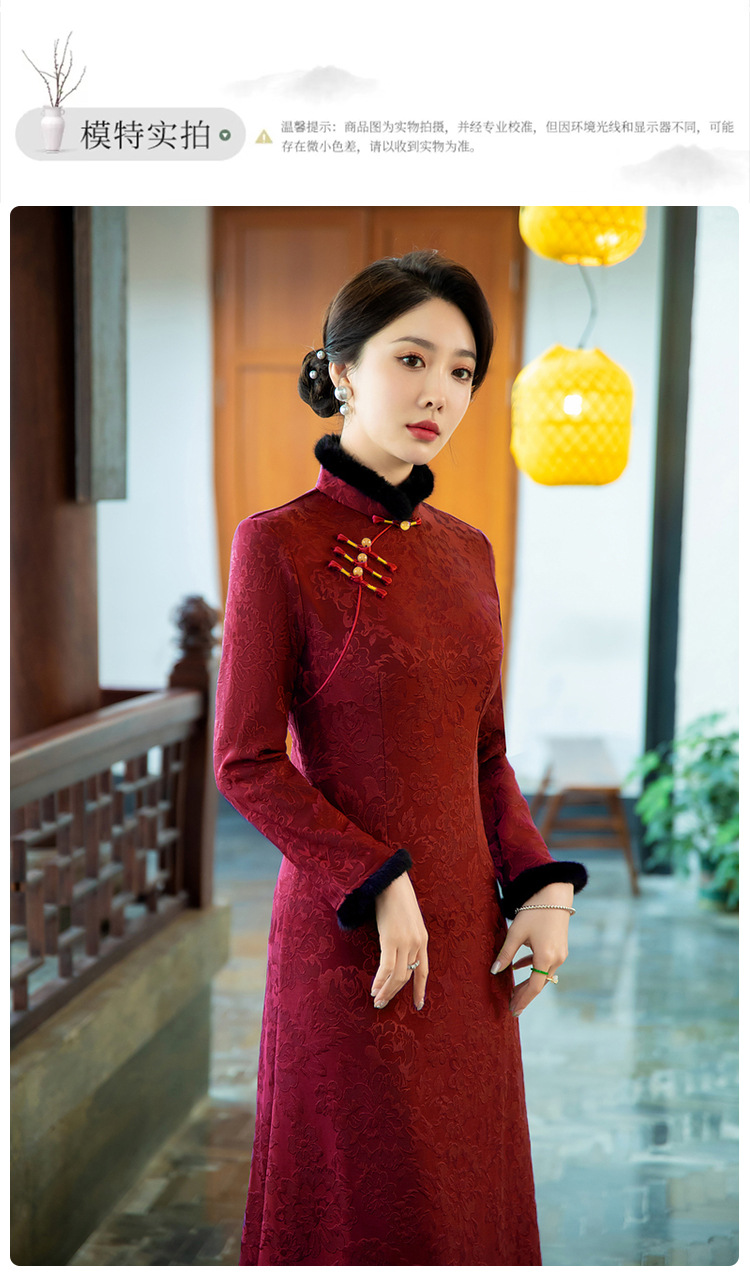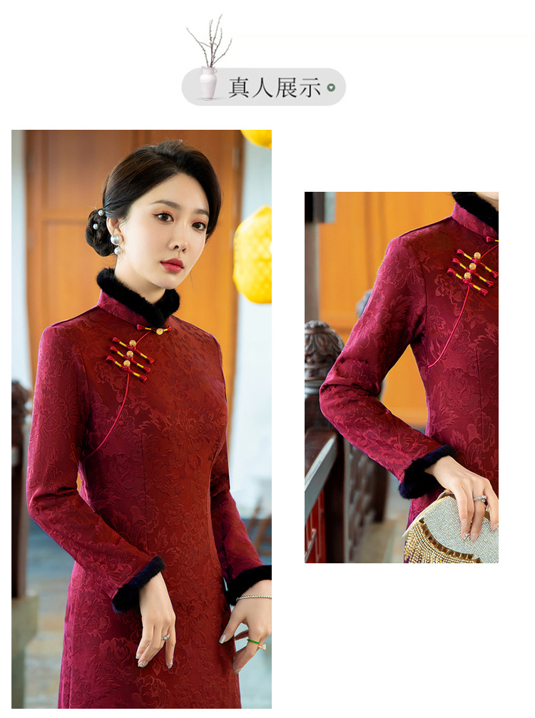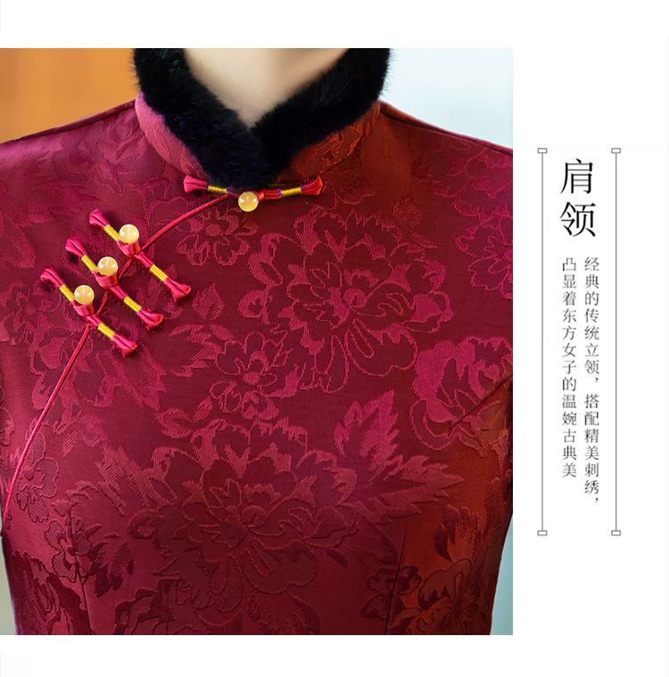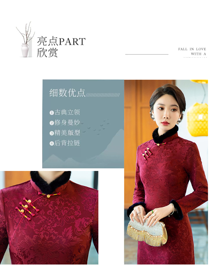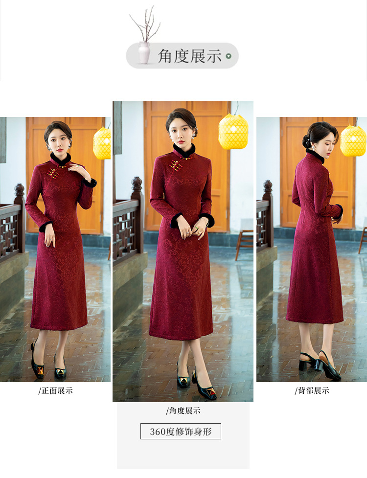 SYG-766新款旗袍冬款加厚水貂绒长款时尚显瘦复古高档连衣裙