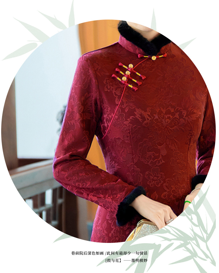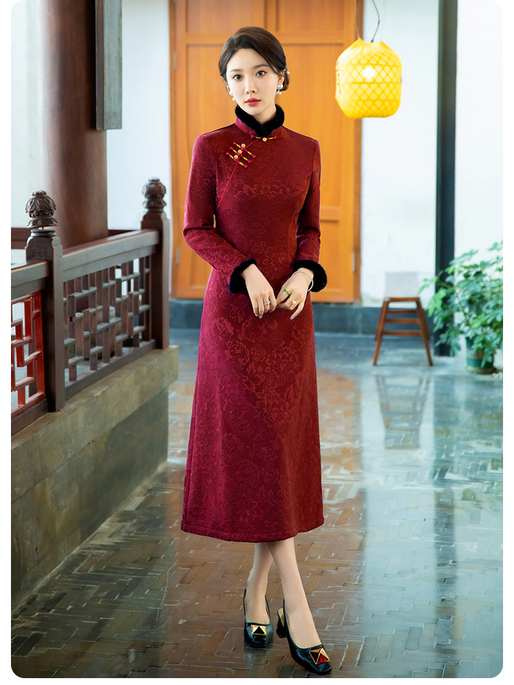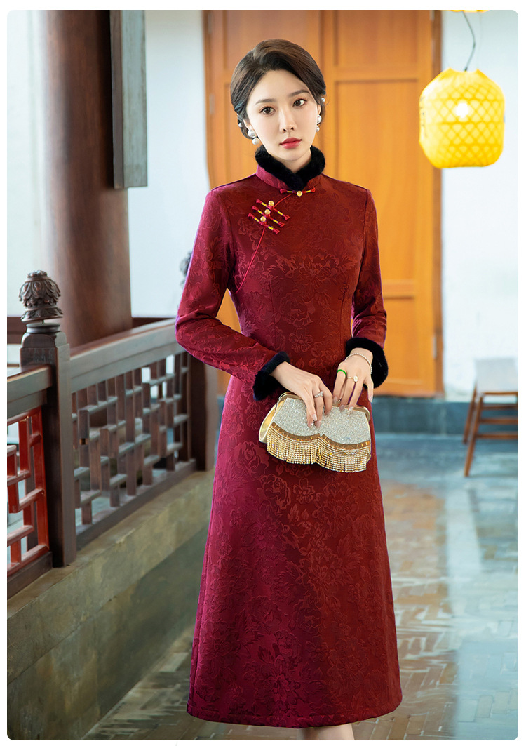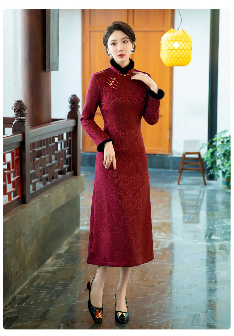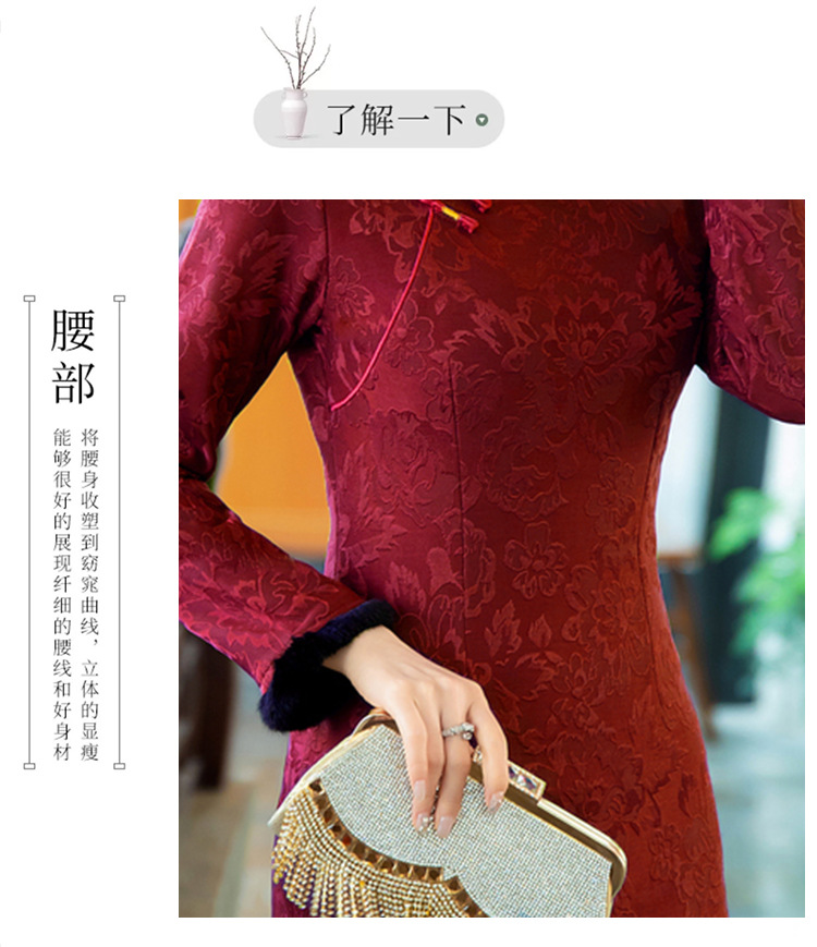 SYG-766新款旗袍冬款加厚水貂绒长款时尚显瘦复古高档连衣裙
