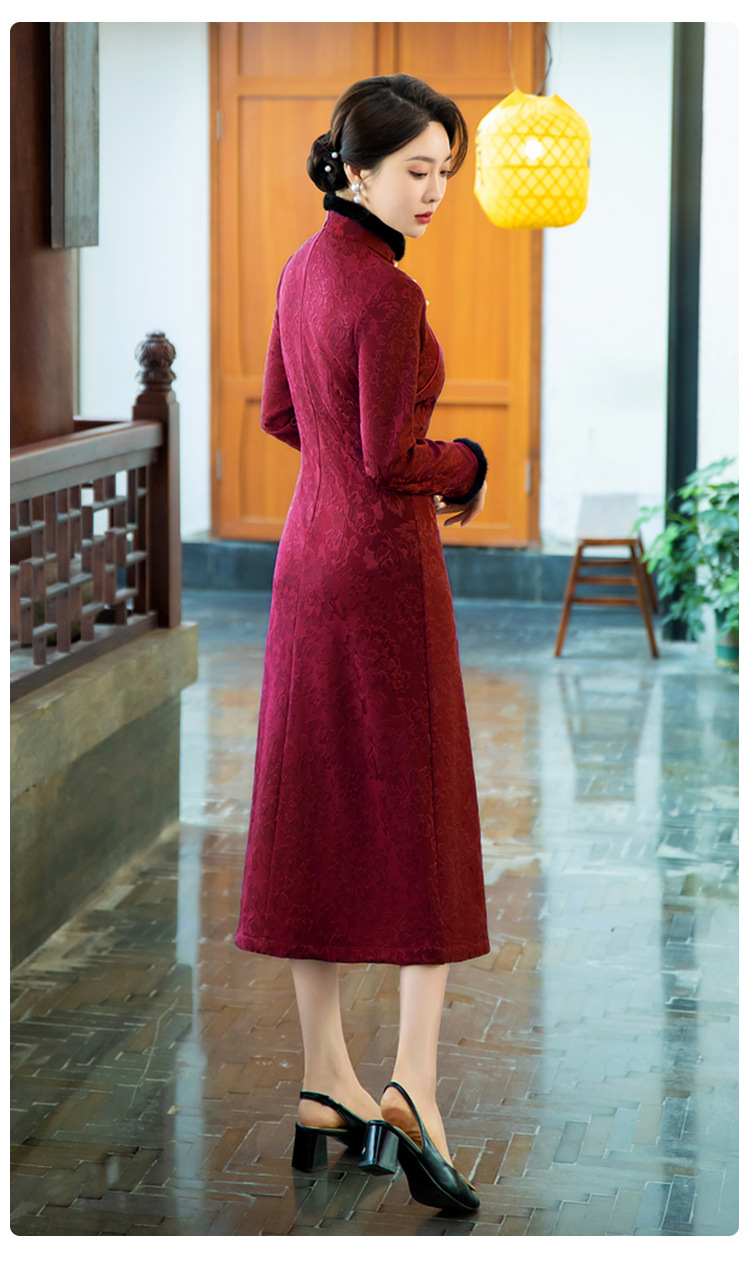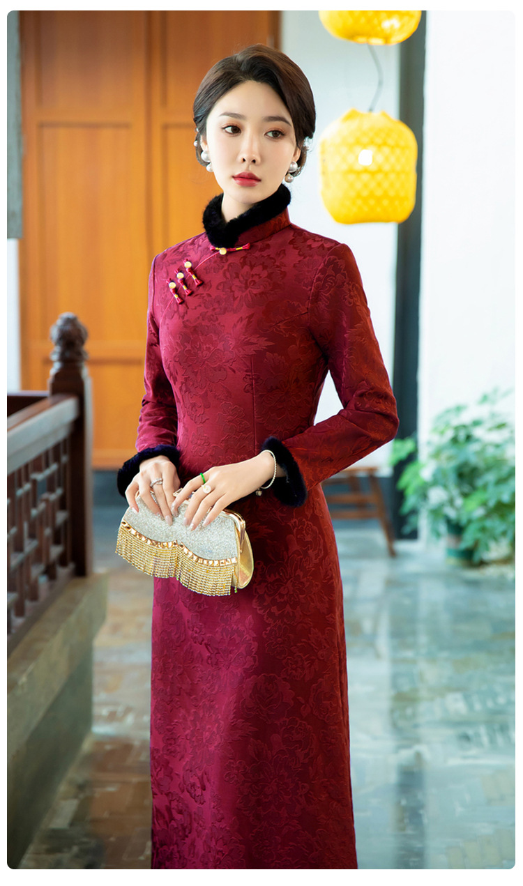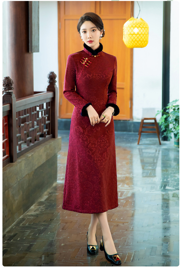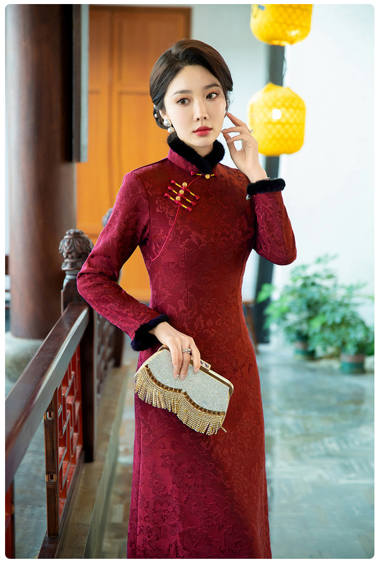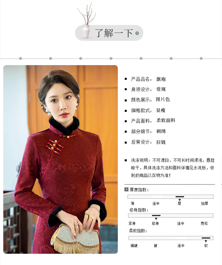 SYG-766新款旗袍冬款加厚水貂绒长款时尚显瘦复古高档连衣裙