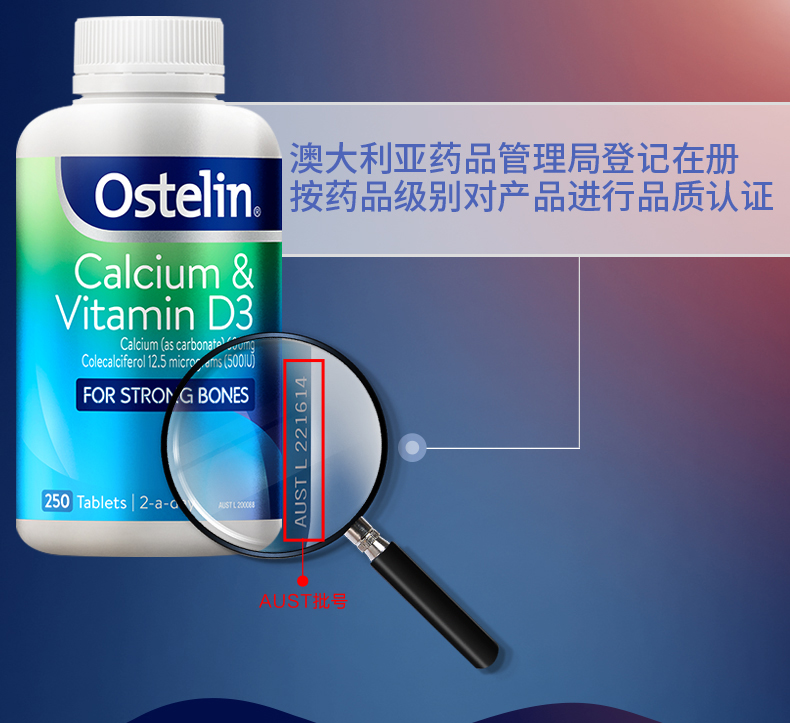 澳洲ostelin进口钙片+维生素d3钙片恐龙补钙成人钙片250粒