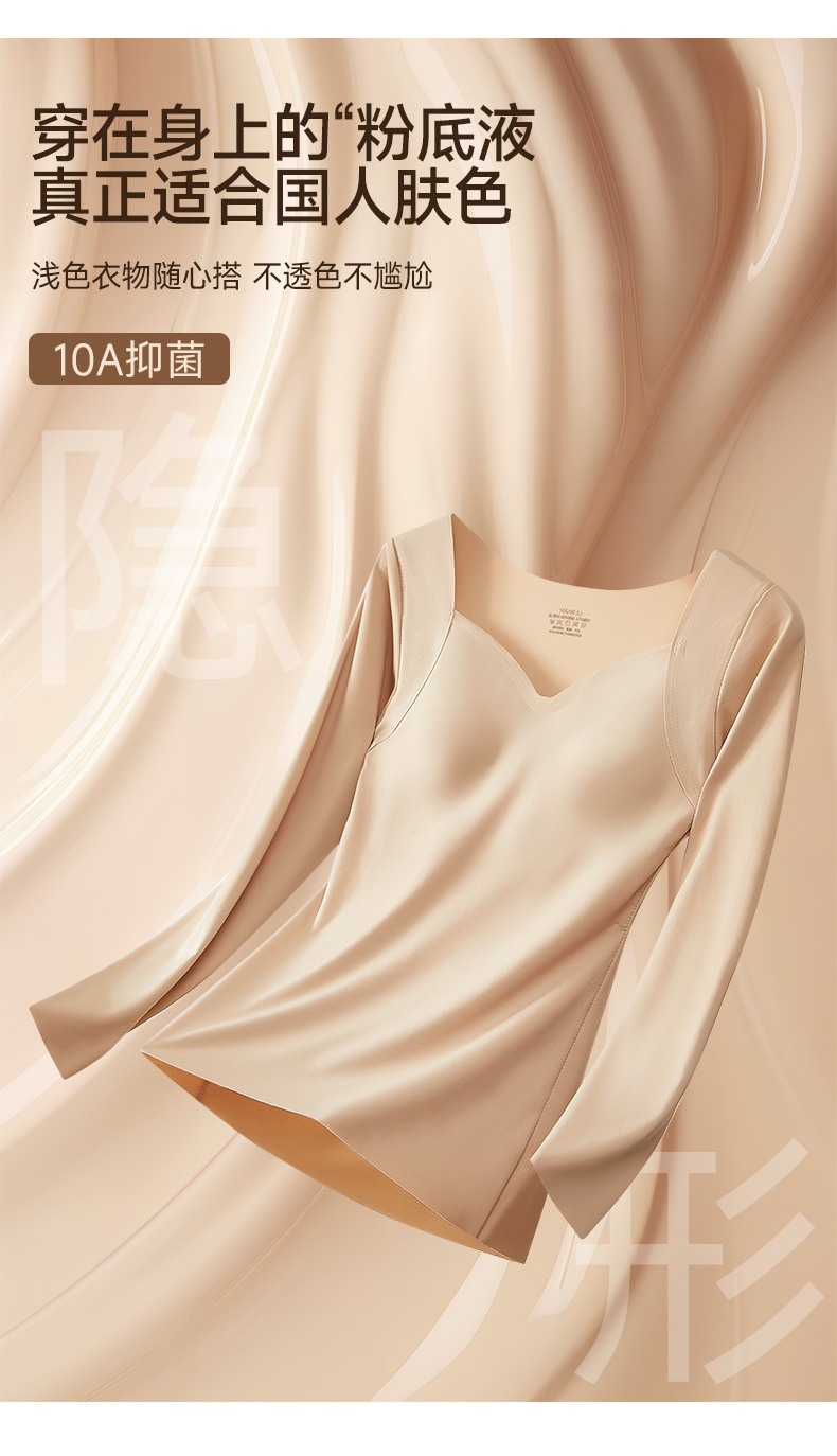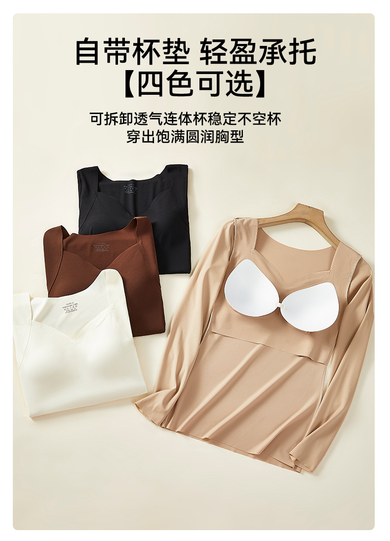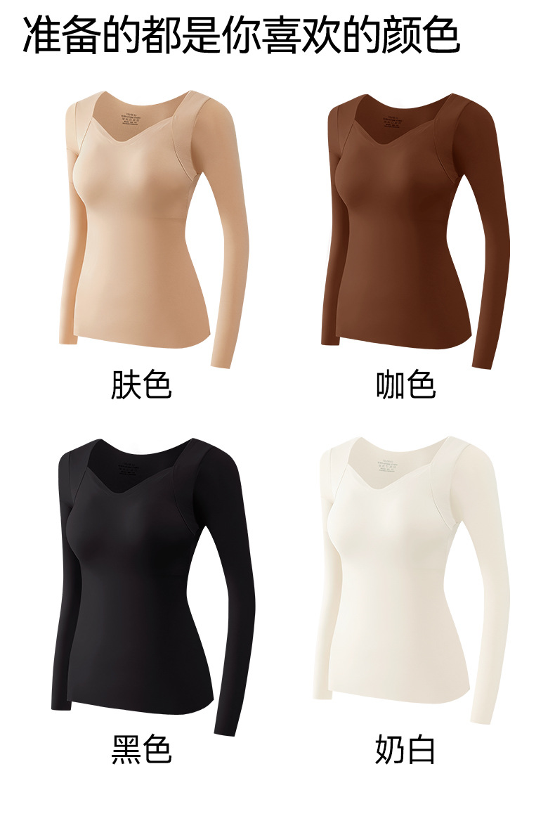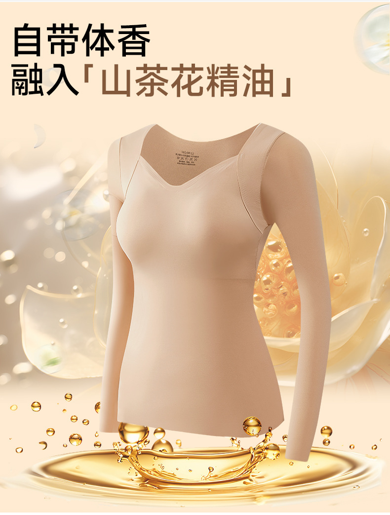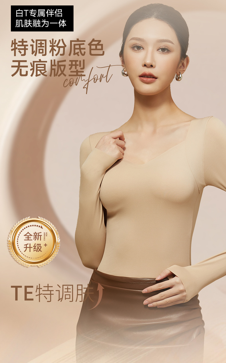 白T专属伴侣【隐形无痕特调色!顺滑无痕又锁温】山茶花抗菌无痕粉底液秋冬防寒保暖内衣女玻尿酸长袖带胸垫肌底衣。ha