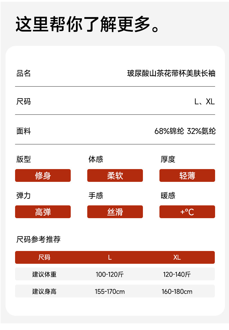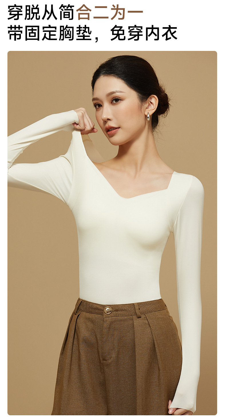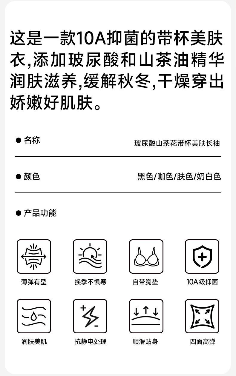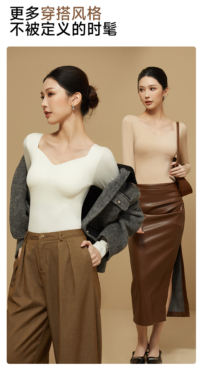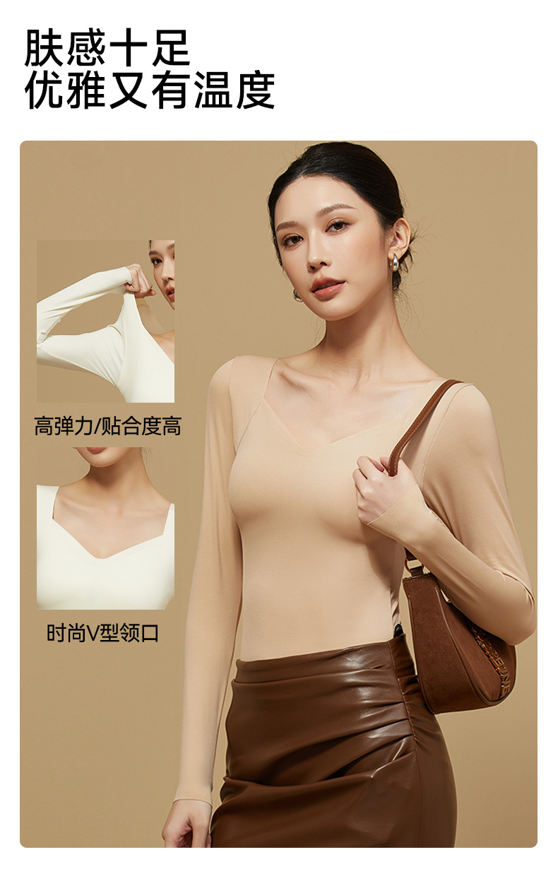 白T专属伴侣【隐形无痕特调色!顺滑无痕又锁温】山茶花抗菌无痕粉底液秋冬防寒保暖内衣女玻尿酸长袖带胸垫肌底衣。ha