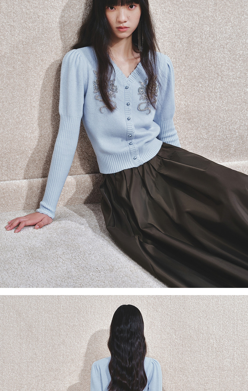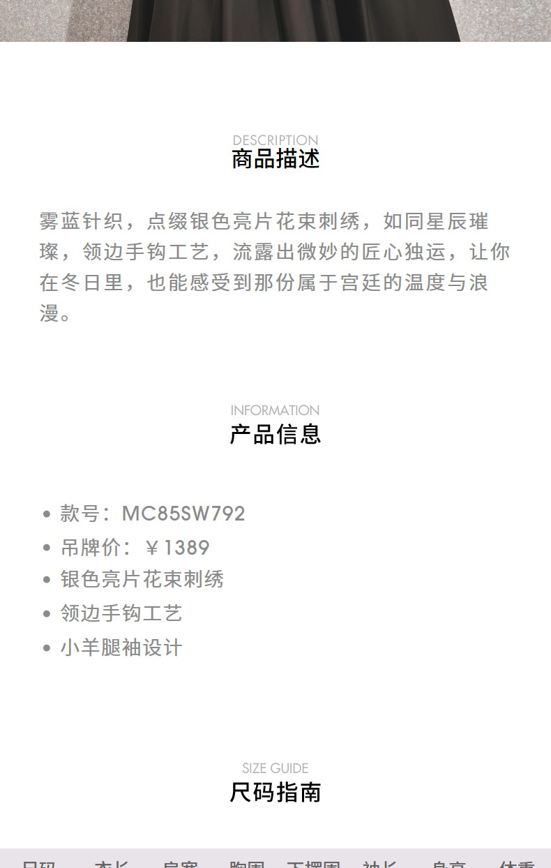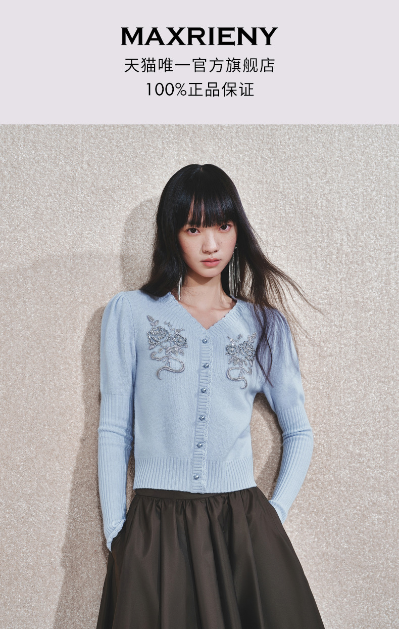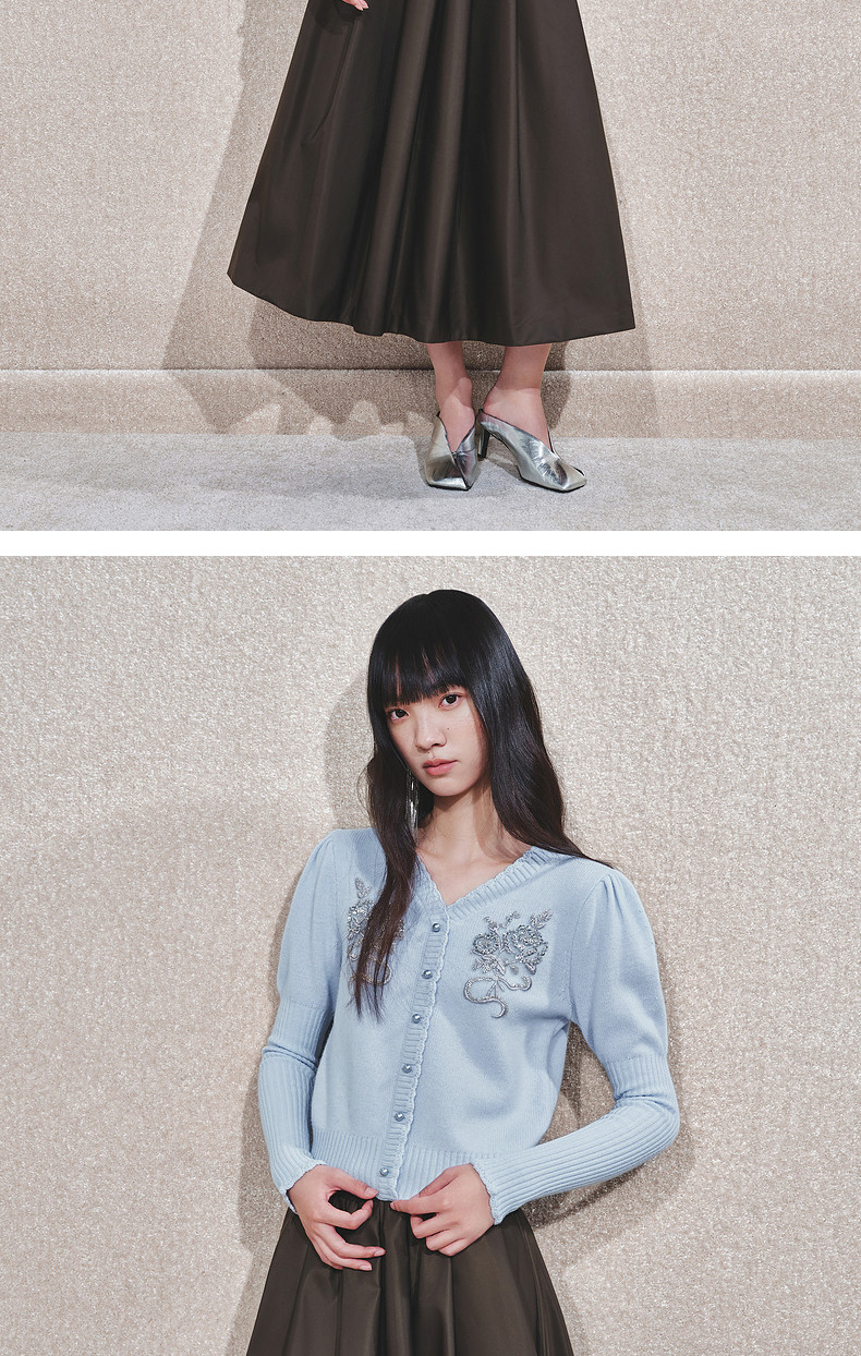 MAXRIENY【商场同款-节庆穿搭】MAXRIENY宫廷复古银色亮片刺绣毛衣(货号:MC85SW792)