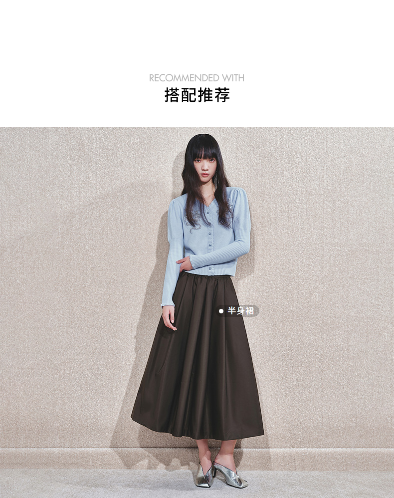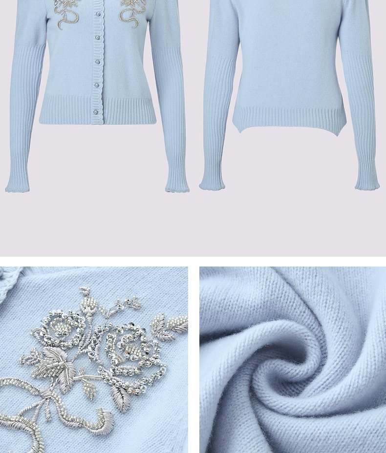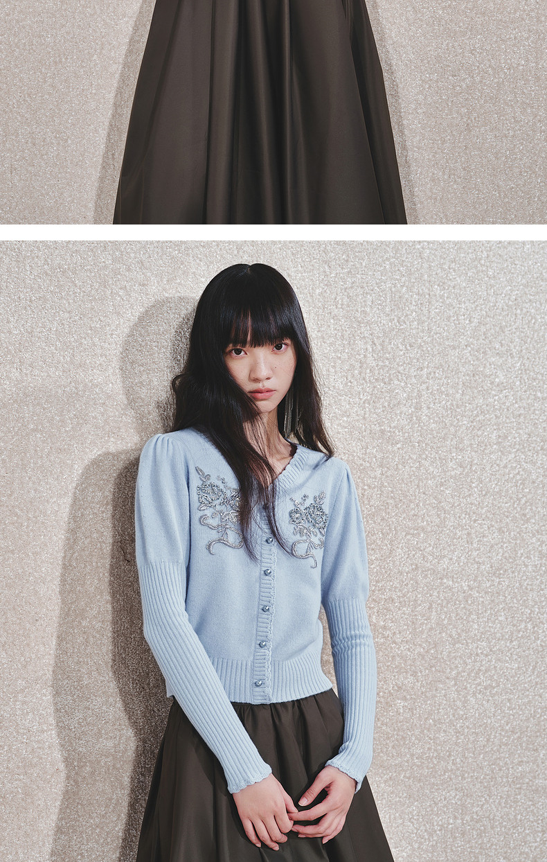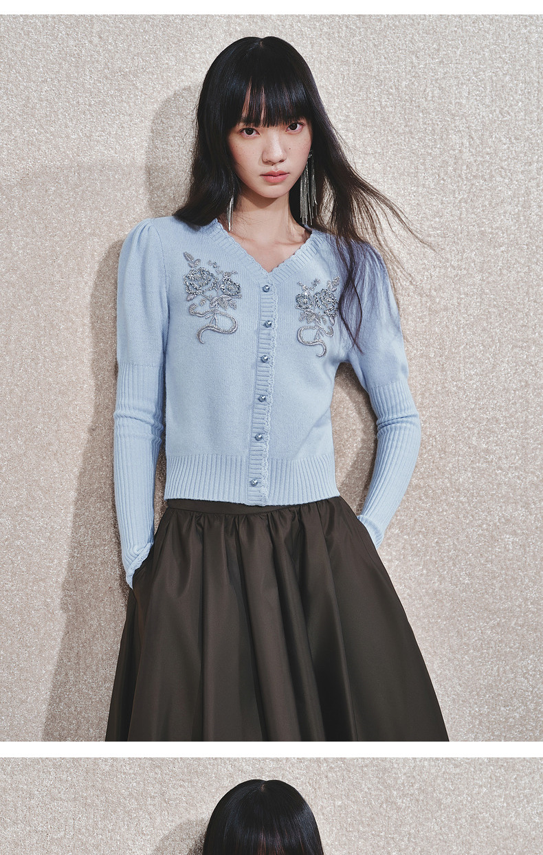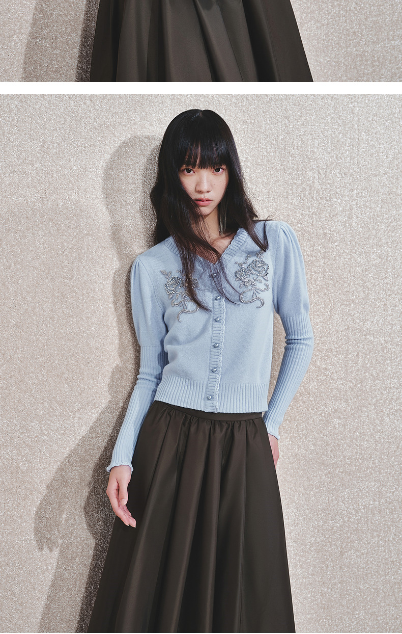 MAXRIENY【商场同款-节庆穿搭】MAXRIENY宫廷复古银色亮片刺绣毛衣(货号:MC85SW792)