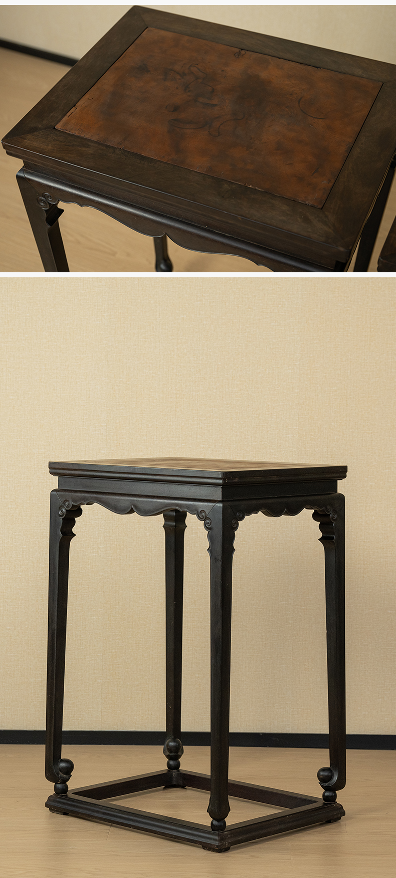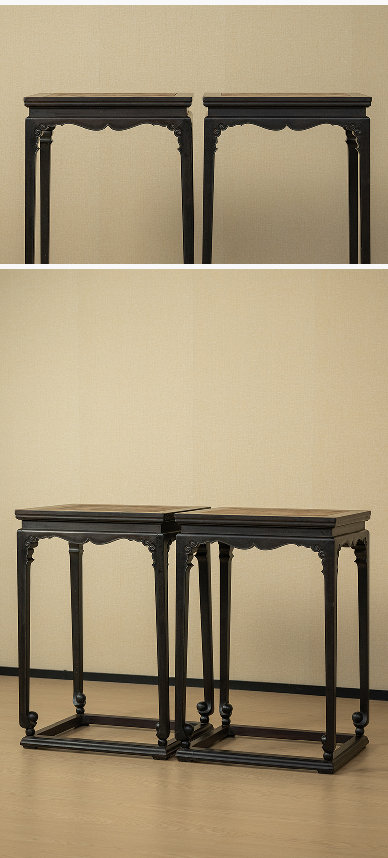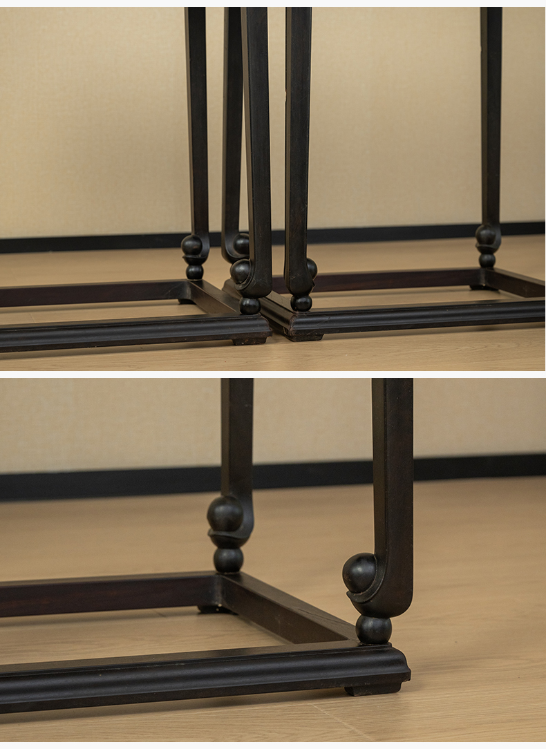 清 紫檀镶瘿木束腰卷球足带托泥香几(一对)