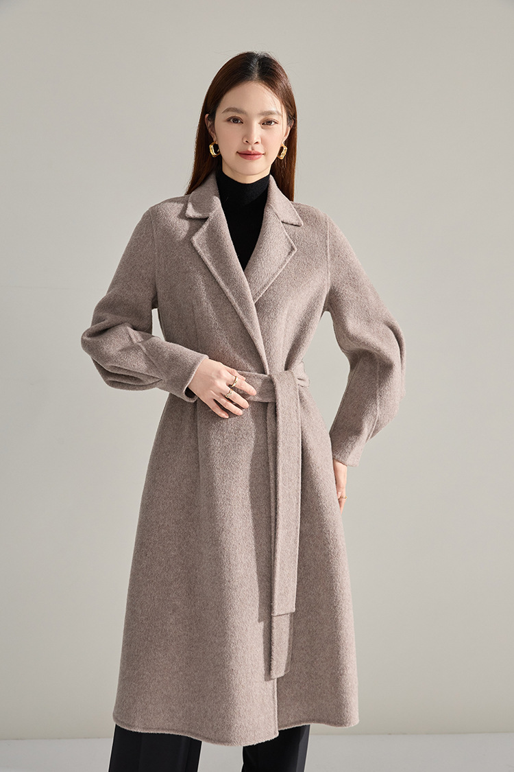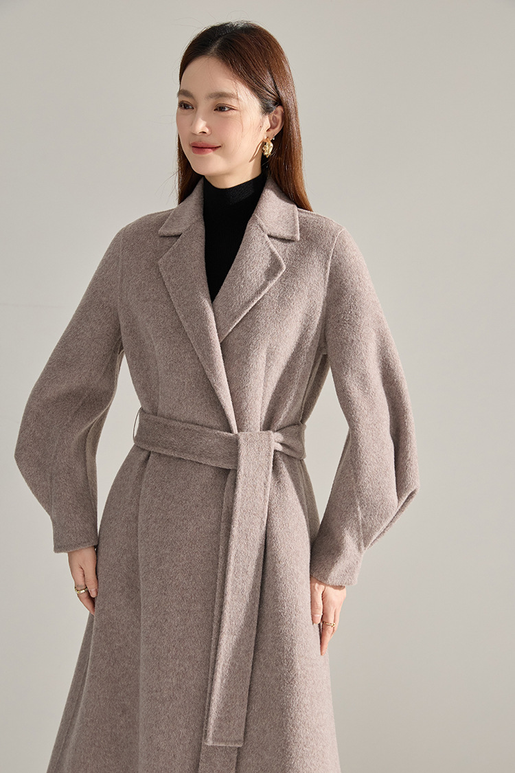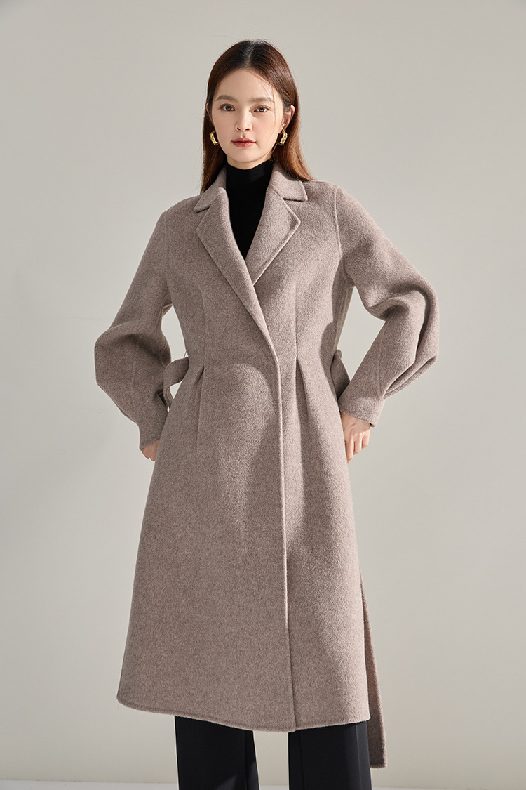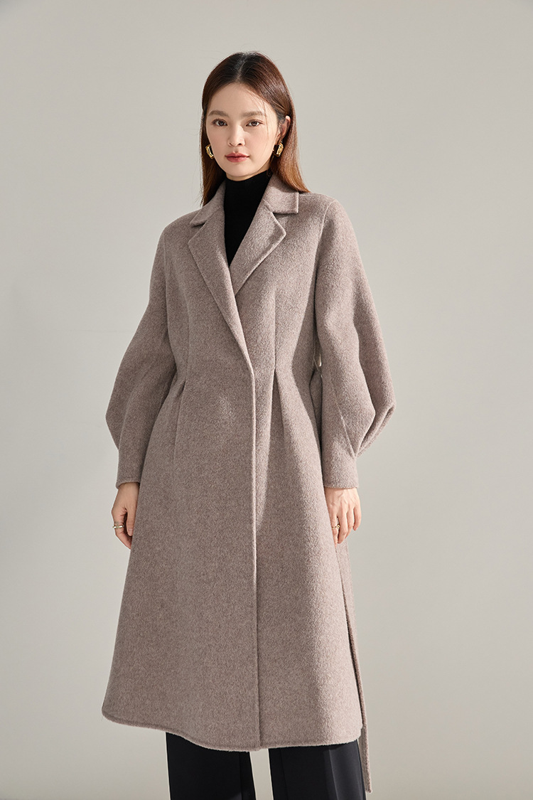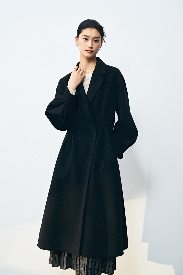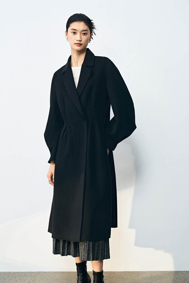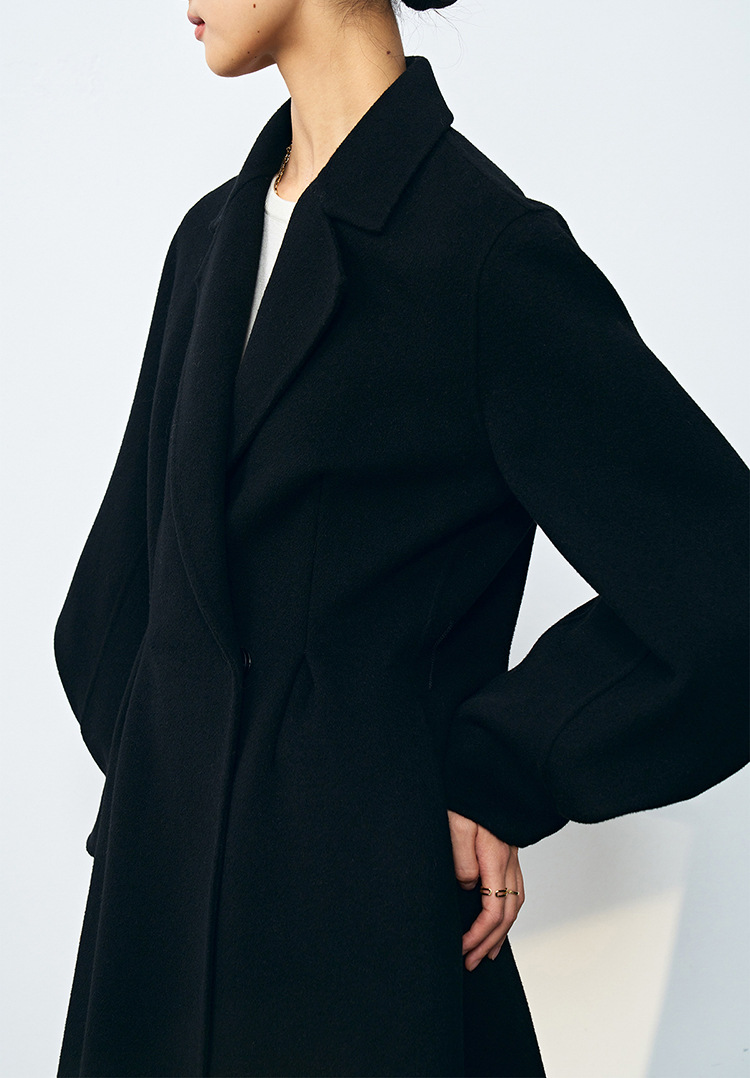 【高货sh】全新升级【铂金会员661/天猫899/差价238】(10703) 洛诗琳秋冬新双面呢褶皱泡泡袖压褶大摆围收腰款气质大衣