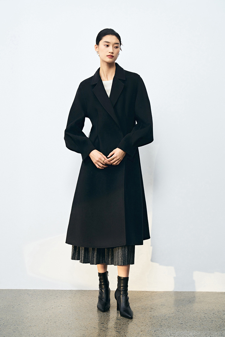 通过立体的捏褶使整体呈现出沙漏型收腰结构立体腰身考究有度大衣也能强势显腰细!