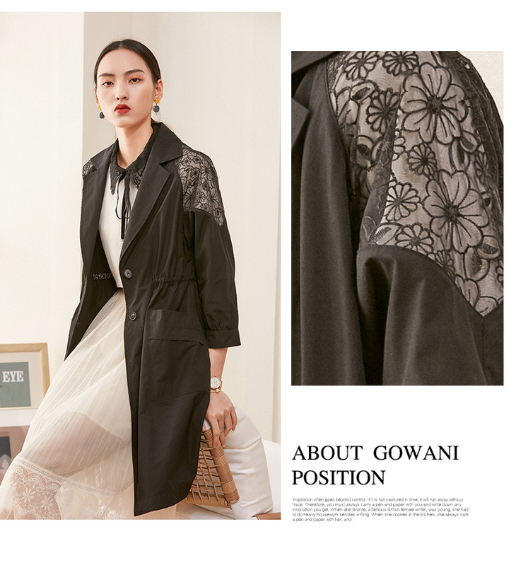 乔万尼肩部蕾丝拼接中长款风衣外套ES1A030