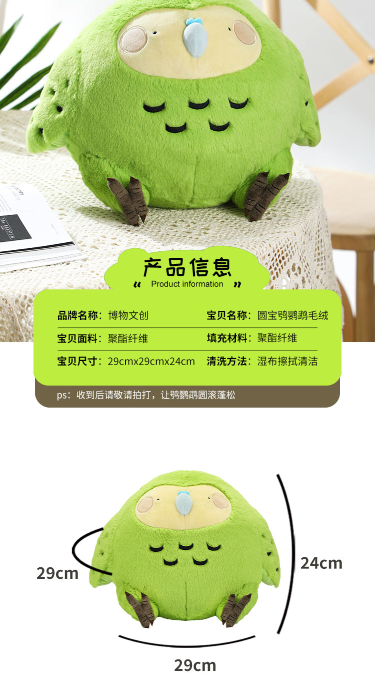 博物文创 圆宝系列 鸮鹦鹉毛绒玩偶公仔呆萌可爱治愈圣诞元旦礼物