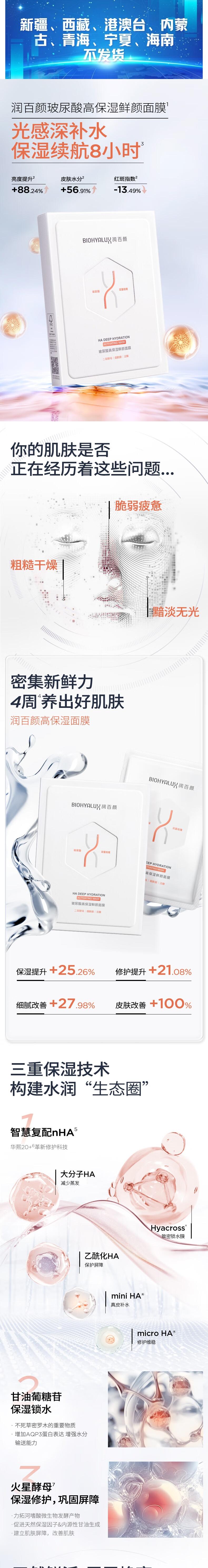 润百颜 玻尿酸高保湿鲜颜面膜30g*5片/盒 6948060407886